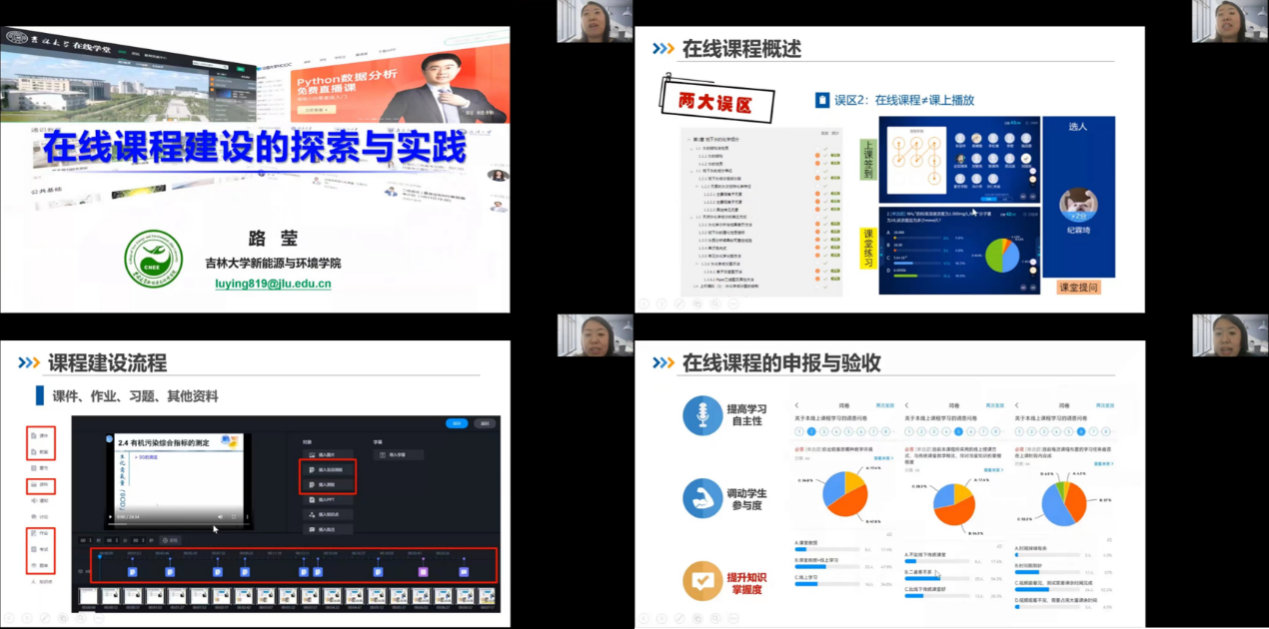 随后公司青年教师路莹副教授做了“在线课程的建设与实践”汇报分享,路老师曾获得全国水利类青年教师讲课比赛特等奖,主持建设的《水分析化学在线课程获太阳集团122cc精品在线课程称号。路老师的报告结合自身在线课程建设的亲身经历和体验,分别从在线课程建设准备、在线应用与课程申报和验收三个方面展开。首先,分享了其在课程建设准备阶段如何操作平台,快速建课、如何进行知点点碎片化和视频录制;然后着重就如何借助线上线下混合方式提高员工参与度的具体方法提出了切实可行的建议;最后以个人两门在线课程的申报书和验收报告为实例,详细介绍了每个环节中遇到的问题和解决办法,为老师们今后更好地开展在线课程建设与申报提供有益帮助。
