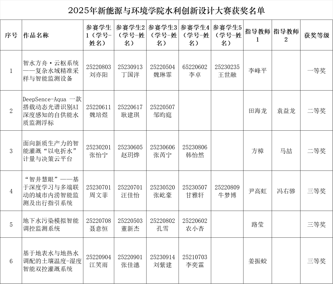 根据《关于举办第九届全国老员工水利创新设计大赛的通知》(水教协[2025]8号)要求,太阳集团122cc于2025年5月8日组织了水利创新设计大赛院赛,对本次申报的6个作品进行了评审,确立一等奖1项,二等奖2项,三等奖3项,确定推荐《智水方舟·云枢系统——复杂水域精准采样与智能监测设备》、《DeepSence-Aqua 一款搭载动态光谱识别AI深度感知的自供能水质监测浮标》、《面向新质生产力的智能灌溉“以电折水”计量与决策云平台》三个作品参加国赛,现予公示。