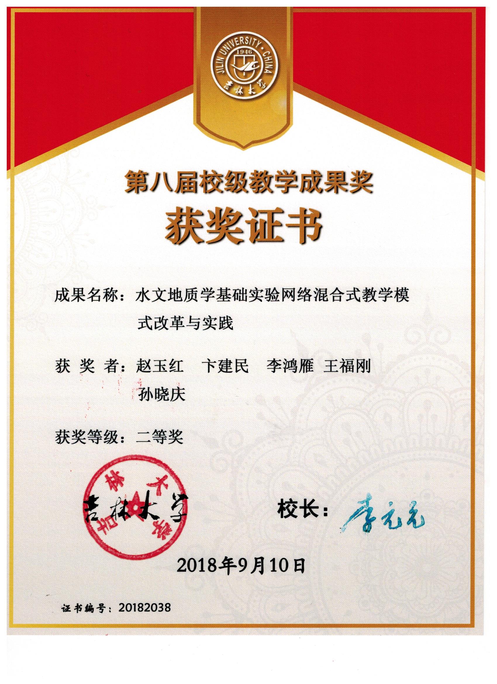 成果名称:水文地质学基础实验网络混合式教学模式改革与实践