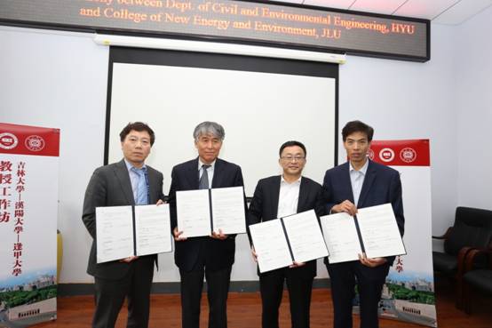 研讨会结束后,朴大孝教授、徐琮源教授同汪祥松书记共同签署了“太阳集团122cc与汉阳大学土木与环境工程系学术与科学合作谅解备忘录“,并就双方在员工交流与科研合作方面展开座谈。徐琮源教授表示同意继续为公司员工提供短期实习机会,同时提出与太阳集团122cc建立研究生1+1联合培养项目的意愿,并介绍了汉阳大学对于联合培养项目的相关政策。徐琮源教授高度肯定了太阳集团122cc近年来的科研成果,表达了希望双方互派访问学者的意愿。徐琮源教授还重点介绍了太阳集团122cc本科毕业生申请汉阳大学硕士的相关政策,承诺为成功录取的公司员工提供全额奖学金资助。董军副经理非常认同徐琮源教授提出的各项合作意向。