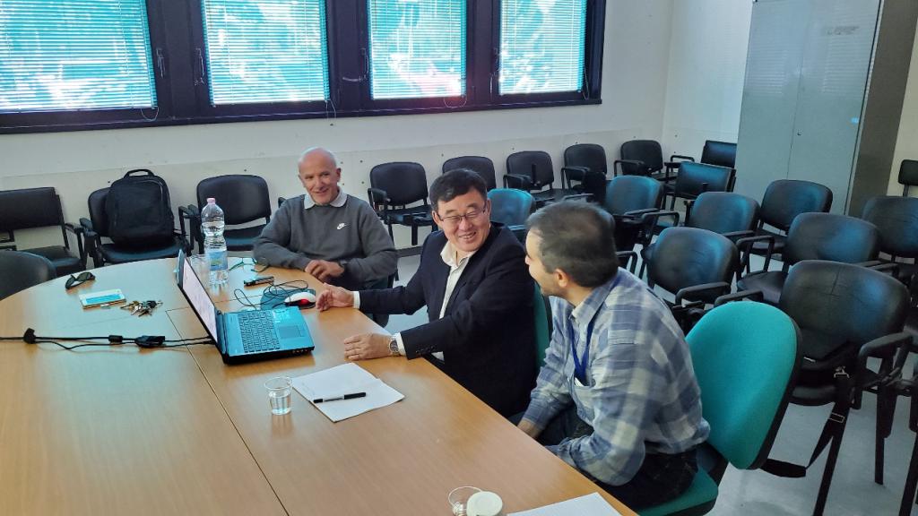 图4 许天福教授与意大利科公司地质研究所(CNR-IGG)Fabrizio研究员和Stefano研究员洽谈未来科研合作