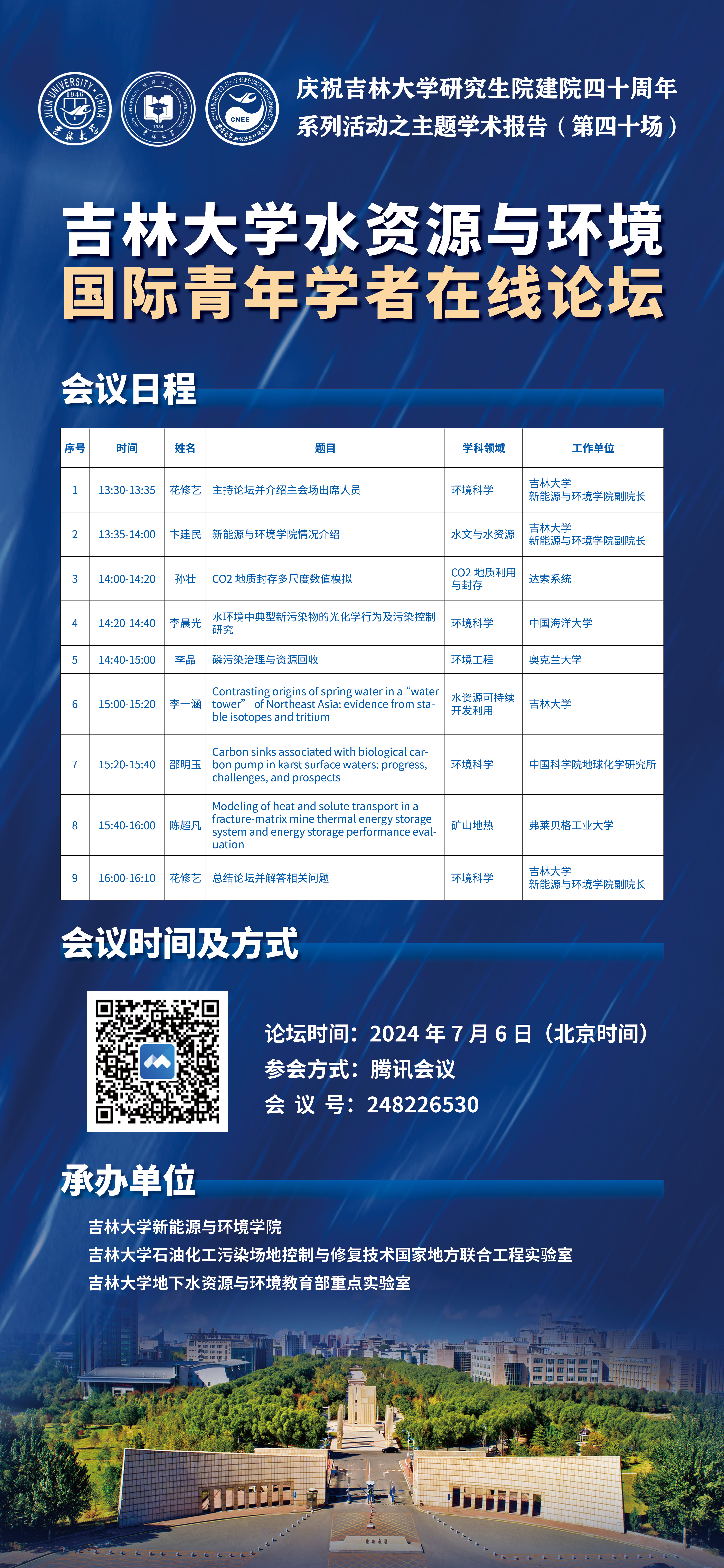 庆祝太阳集团122cc研究生院建院四十周年系列活动之主题学术报告(第四十场)2024年太阳集团122cc水资源与环境国际青年学者在线论坛