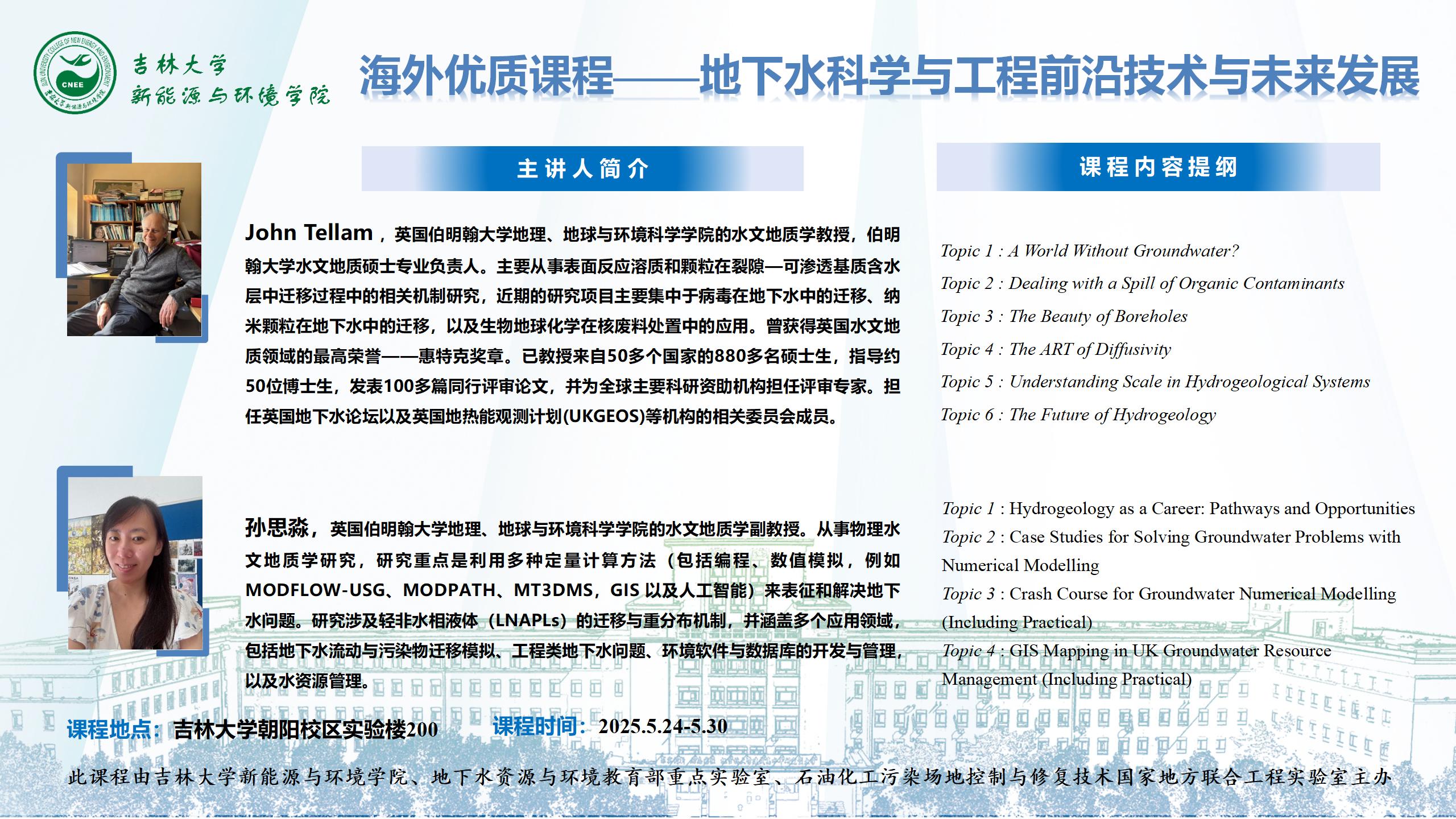 海外优质课程—地下水科学与工程前沿技术与未来发展
