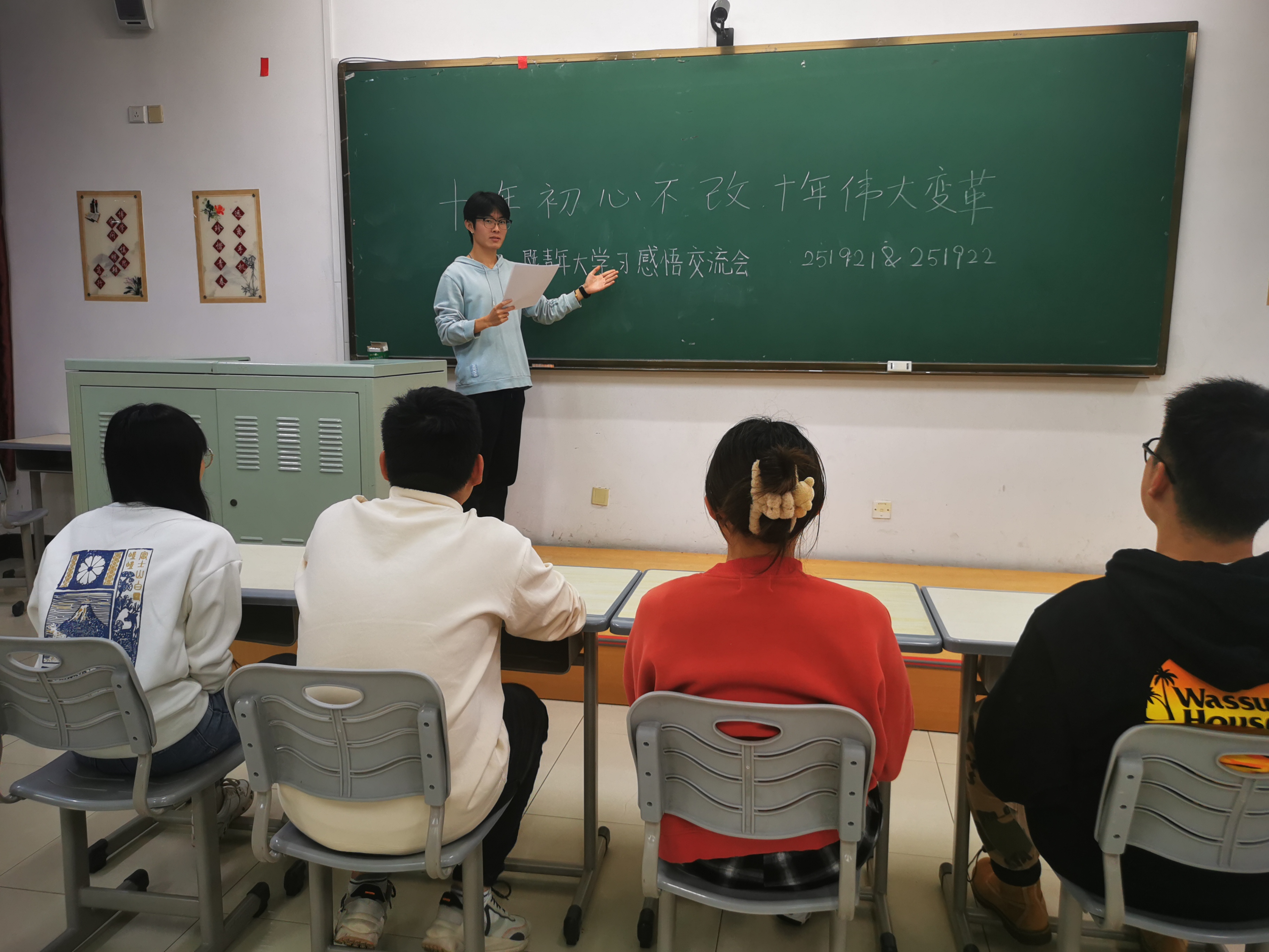 活动开展之前,团支部小组委员共同商量,认为这次活动举办的必要性。团小组成员向团支部成员宣传并强调关于“新时代的伟大成就”的重要性和必要性。团支书朱润泽同学组织团支部成员以线上观看青年大学习以及PPT的形式,互相交流各自的看法等方式深入理解本次活动主题。黄婕妤同学带领大家一起重温《习近平谈治国理政(第四卷)》“三、坚持党的全面领导”、“六、全面建成小康社会,开启全面建设社会主义现代化国家新征程”,切实为办好人民满意的教育贡献智慧和力量。同时团员同志们在平时的课余时间中也积极学习书本知识,并认真做好学习笔记。