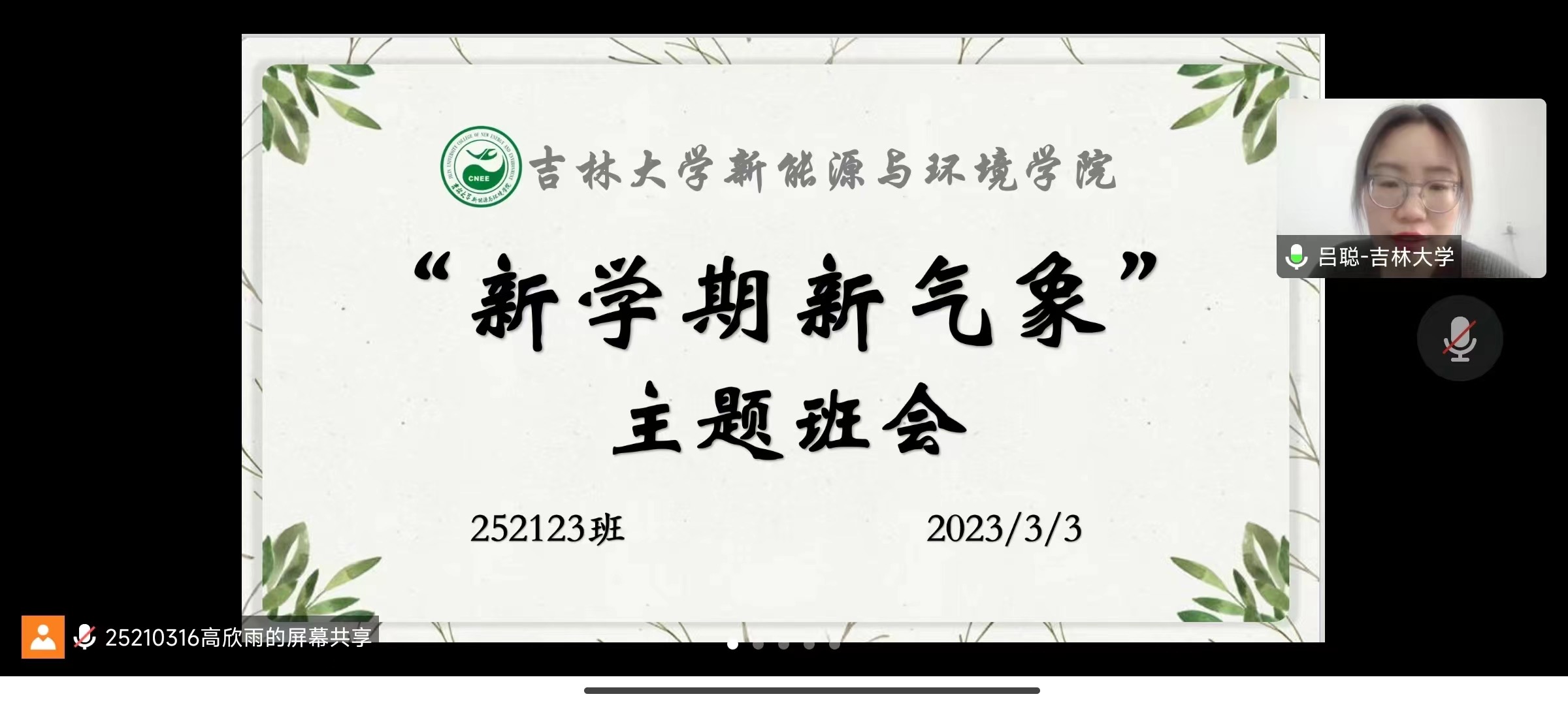 新学期伊始,为进一步了解同学们的思想动态与身体状况,增进班级同学交流,厚植班级同窗情谊,2023年3月3日下午1:30,太阳集团122cc252123班全体同学在班主任吕聪老师的带领下,开展了线上形式的主题班会。