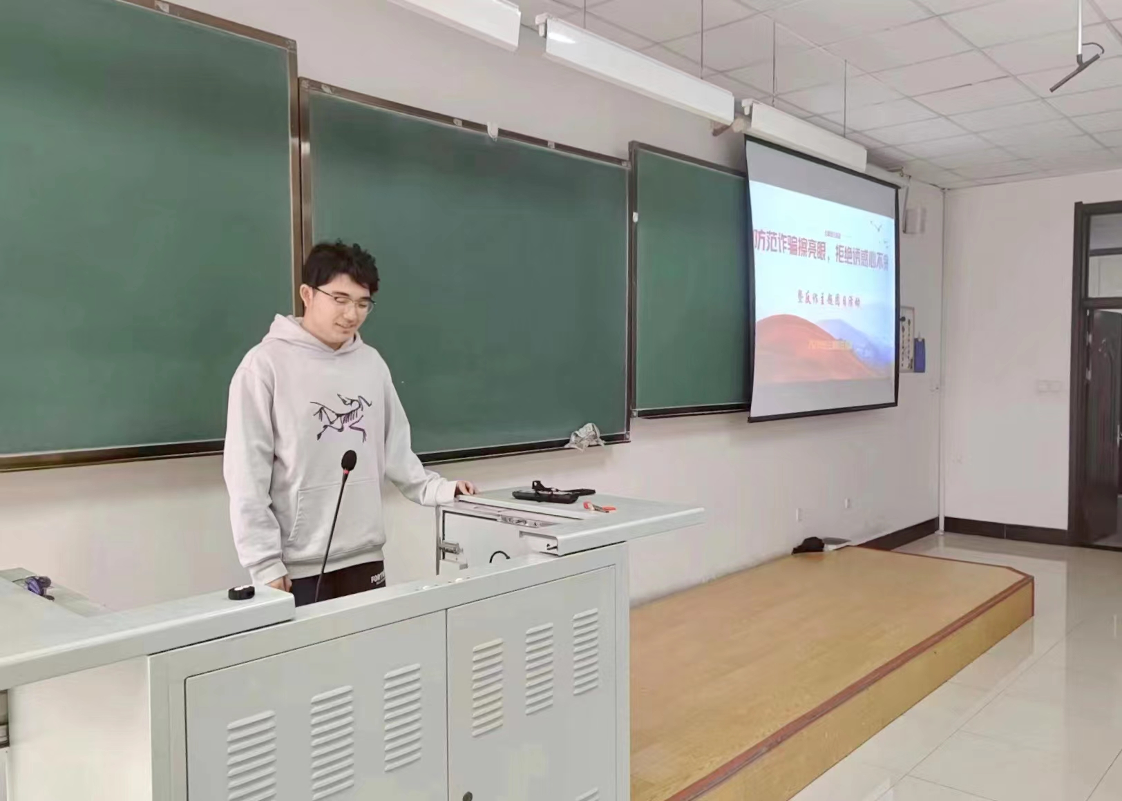 随后,团支书向各位同学宣传了有关防诈骗的法律知识。《中华人民共和国刑法》对于涉及到欺诈、诈骗等犯罪行为进行了明确罚则;《中华人民共和国消费者权益保护法》为消费者提供了相应的维权途径和补偿措施;《中华人民共和国网络安全法》规范了网络空间中的信息安全问题。最后强调,确认被诈骗后,要第一时间向就近的派出所进行报案。
