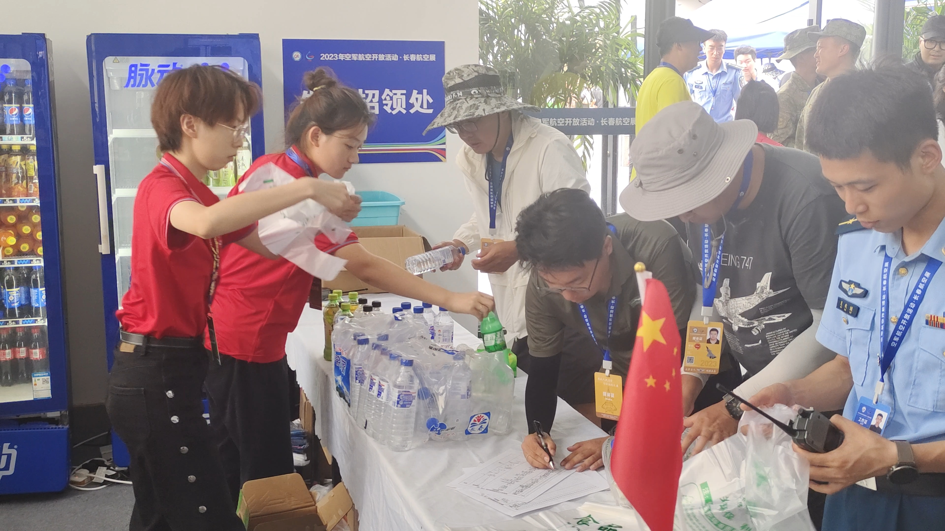 7月26日-7月30日,为期5天的“蓝天盛会”全面举行,歼-20、歼-16和运油-20首次同框,编队低空通场;运油-20低空释放干扰弹,如同天女散花;歼-20首次降落在航展现场的跑道上,观众激动不已……我们在航展的一线坚守岗位,服务于人民。每天早上被凌晨3:20的闹钟叫醒,媒体中心由空荡到拥挤,我们24人全心全力全程为进800位媒体老师提供生活保障服务。