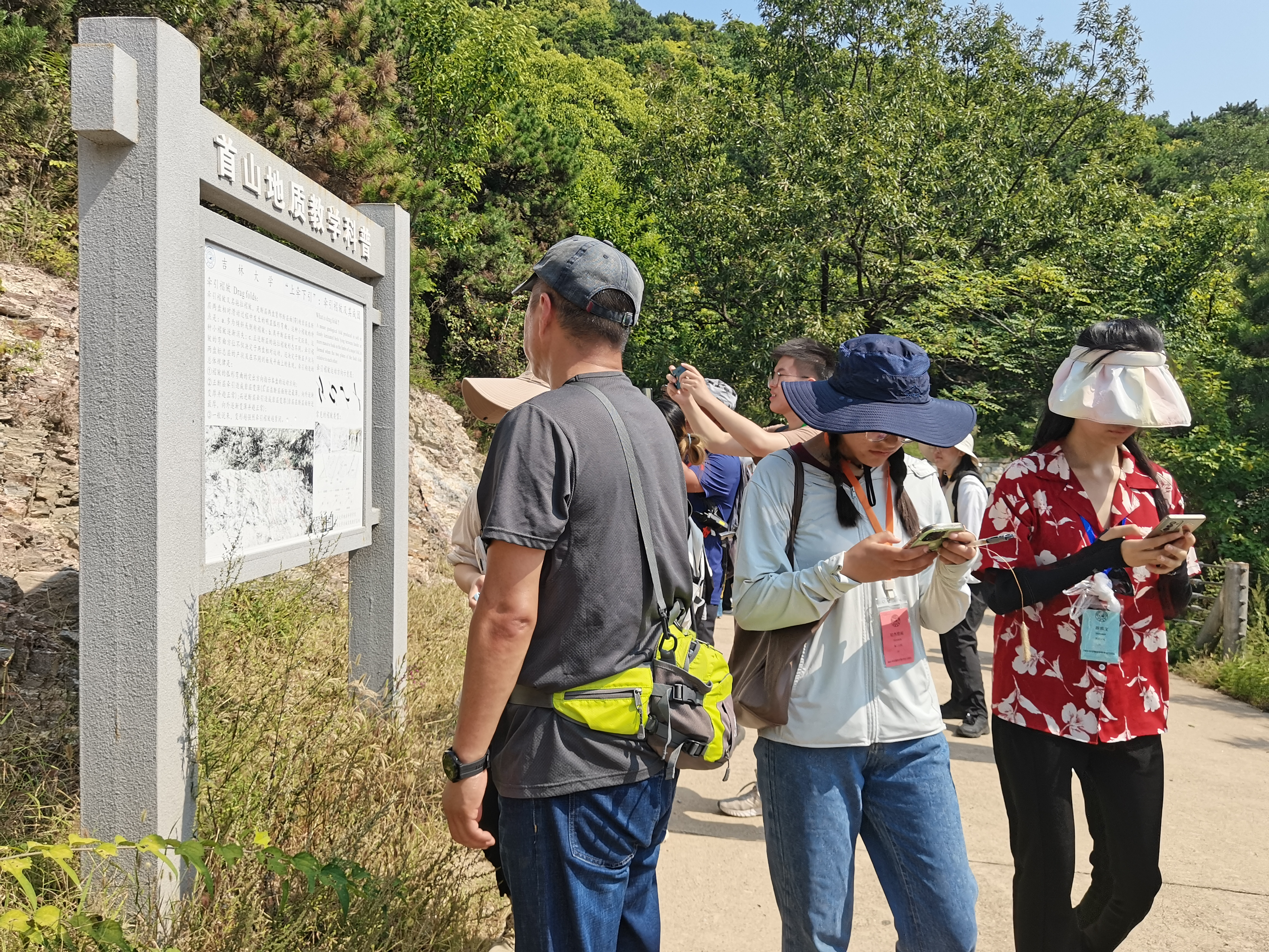 9月19日7:20分,同学们准时在基地进行集合,登上了前往白庙子实习地的大巴车。到达实习目的地后,由李杰老师带领同学翻山越岭,学习沿途的蓟县系岩石地层特征。虽然实习过程山路崎岖,一路上同学们能够互帮互助,跟随老师脚步,期间有同学的腿不慎磕伤,但是仍能坚持参加实习。经过实习同学们不仅丰富了知识储备,更是培养了团结互助、坚持不懈的美好品德。