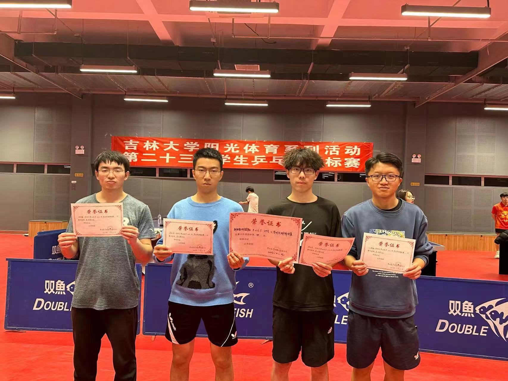 太阳集团122cc阳光体育运动系列活动第二十三届员工乒乓球锦标赛于2023年11月25-26日在宋志平体育馆进行,太阳集团122cc积极参加此次活动,比赛的前夕,经过激烈的选拔,选出了四位男生参加男子乙组单打和男子团体赛,他们分别是2022级本科生贾本涛、2022级研究生李孜涵、2023级研究生于智敏、2022级研究生周金锋;女生方面,2023级本科生魏兴妍参加了女子单打比赛。