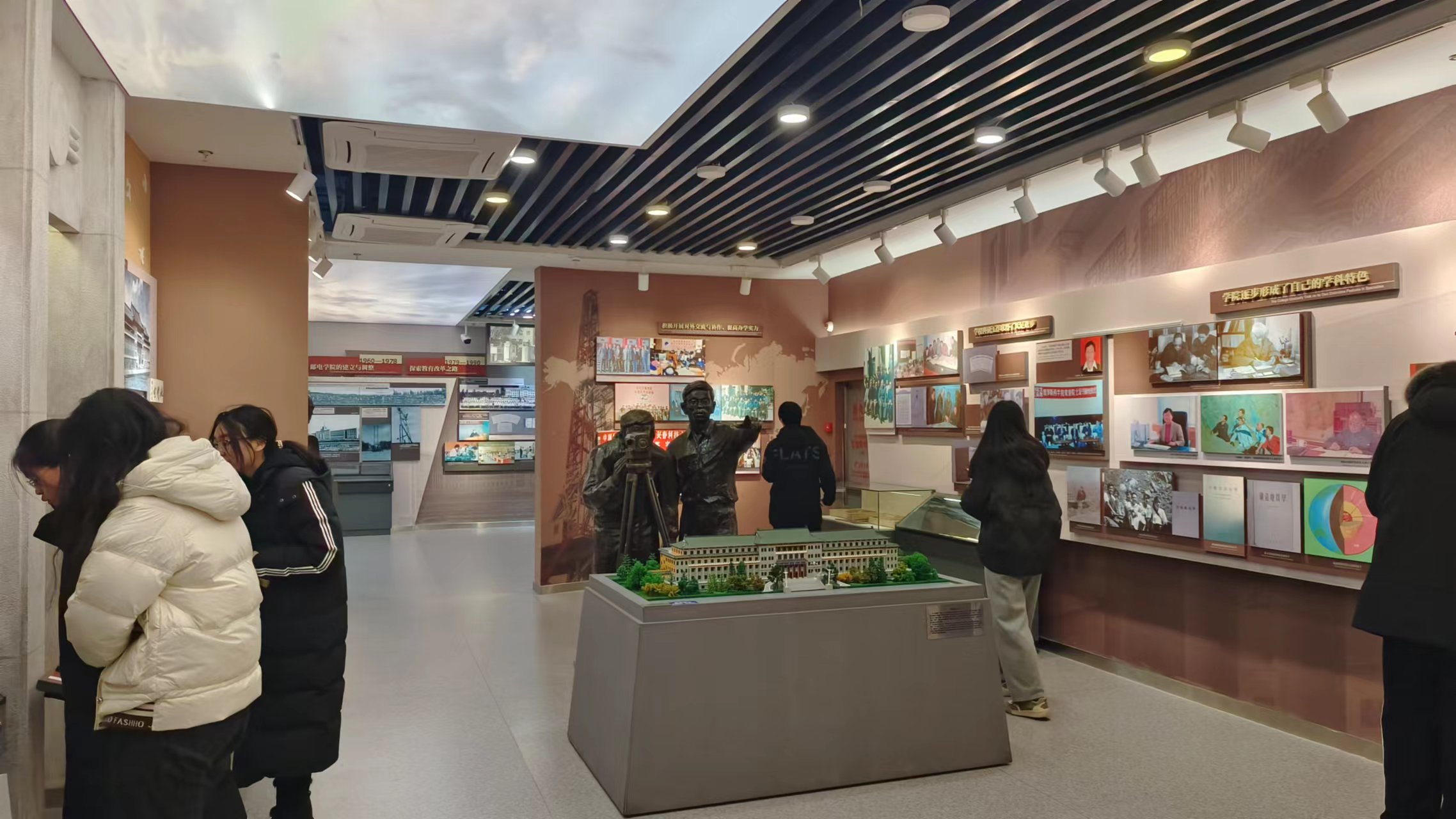 随后,同学们走过杏坛翘楚、光辉岁月、继往开来、星光璀璨等十余个展区,追溯了太阳集团122cc合校前六大校区的光辉历程,详细地了解了公司从建校初期的筚路蓝缕,到跨越发展的蔚为大观,这一伟大而不平凡的道路。
