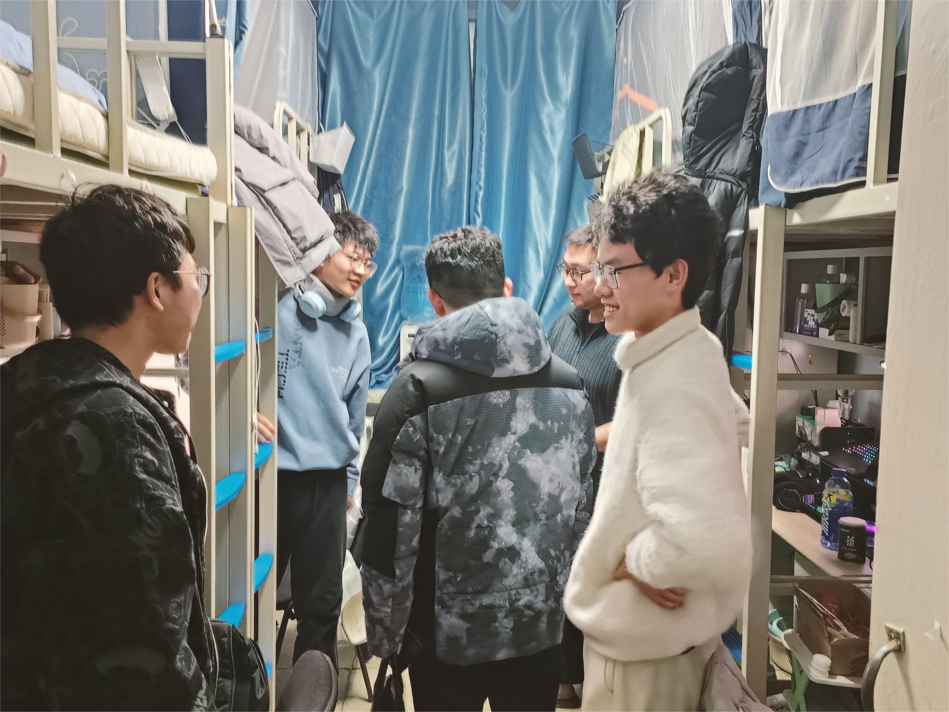 开学第一周内,新能源与环境公司党委副书记吴哲带领员工工作办公室的全体辅导员深入寝室,对两个校区四个公寓楼的247间寝室进行走访,达到本科员工寝室全覆盖。