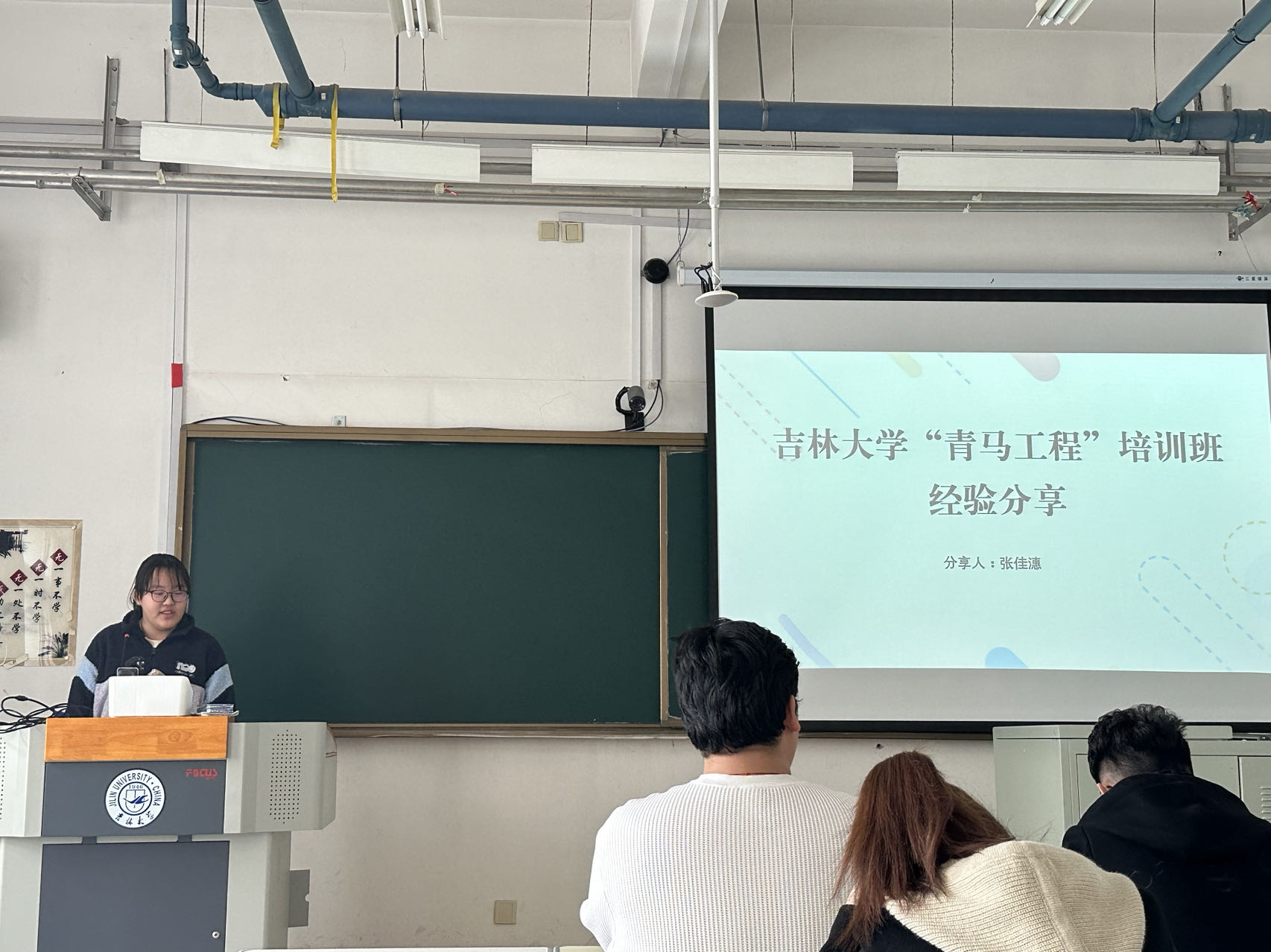 张佳潓同学首先向大家详尽地介绍了“青马工程”的遴选流程,并针对每个环节现身说法,指出在公司推荐答辩阶段,需在规定时间内完成、保证资料内容属实、做好充足的准备;对于笔试阶段,分析了考核内容,向同学们推荐可靠的的资料搜集软件;介绍了小组面试的两个部分—自我介绍与提问环节。同时,张佳潓同学热情分享了自己参与遴选时的心路历程,鼓舞同学们的精神,告诉大家做好心态调整,相信自己,竭尽全力,从哪里跌倒,就从哪里爬起来。