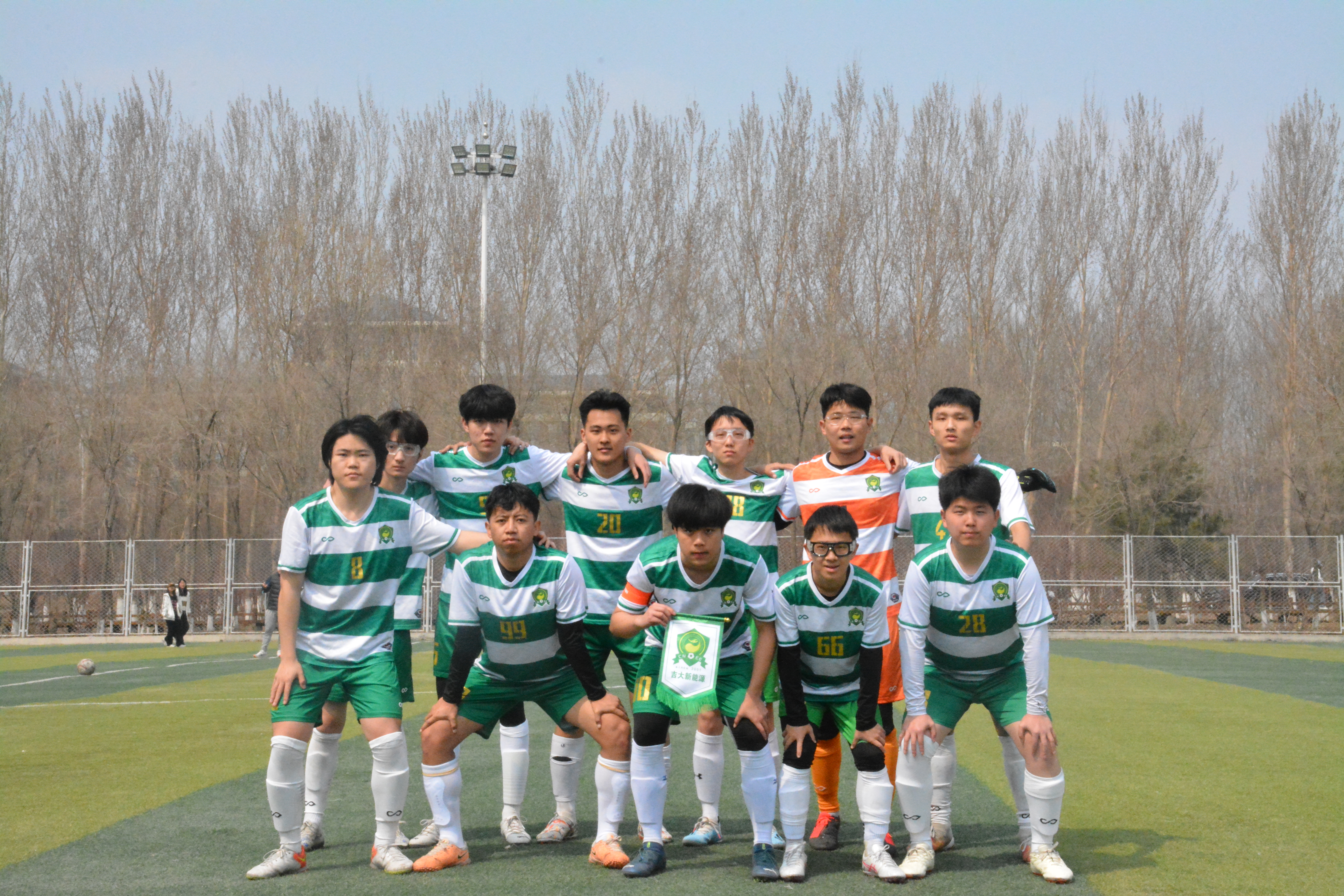 4月11日,第三场比赛是生死战,面对实力强劲的化学公司,我们只有在常规时间内取胜,才有希望出线。比赛开始化学公司队员凭借身体和速度的优势,形成了压着打的局势,比赛节奏被对方掌控。主教练赵一鸣和队长杨方宇在场上场下不断指挥球员,新能环渐渐找回自己的状态和节奏。在比赛第27分钟,新能环获得一个位置绝佳的前场任意球的机会,任意球由队长杨方宇主罚,一脚电梯球,皮球直接落入化学公司的球门中,1:0领先!随后化学公司开始疯狂反扑,新能环改变阵型严防死守,把胜利的果实保留到最后一分钟,为后续的出线奠定了基础。