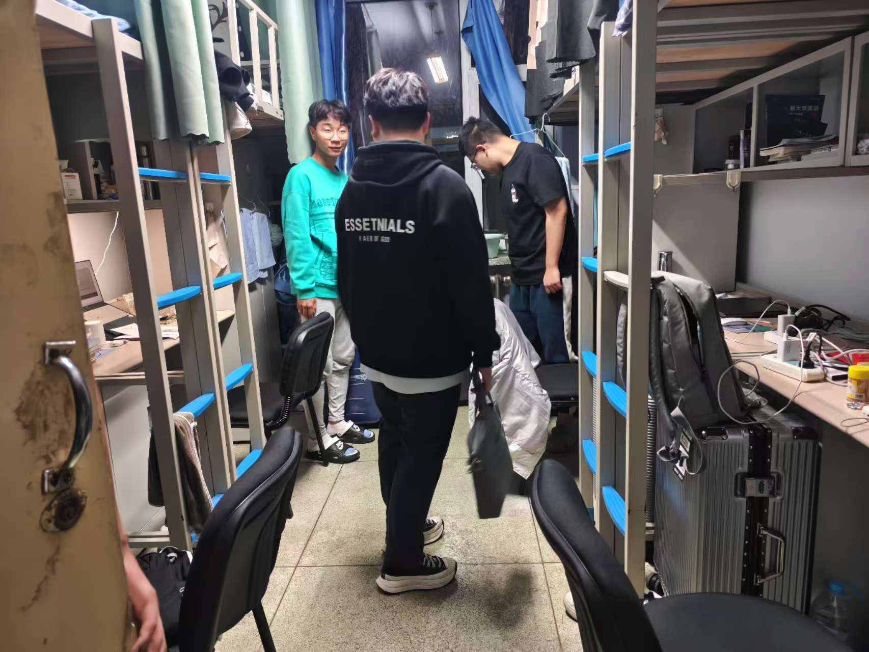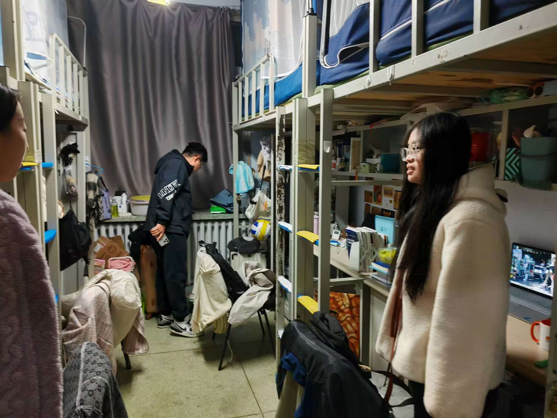10月23日,2023级辅导员姜岳彤老师进入南苑二公寓寝室,了解员工宿舍温度情况,并对违章电器进行检查。姜老师提醒员工关注室内温度,及时反馈,便于校方维修。同日,姜老师走进《马克思主义基本原理》课堂,检查员工到课及前排就坐情况,本次课程共1人请假。