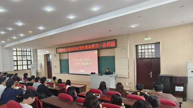 本次党课主要分为两个部分的内容。首先,孔老师对“百年未有之大变局”的时代背景和世界背景进行了详细介绍。他讲解到,这一变化是从实际上“一家独大”的单极世界向协同共治的多级世界的重大转变;是现代化发展路径从一元走向多元的重大转变;是从社会主义遭遇严重挫折向科学社会主义在21世纪焕发勃勃生机的重大转变。这一大变局为我国带来重要机遇也带来重大挑战,厚积薄发的中国崛起也将为世界共同发展作出更大贡献。
