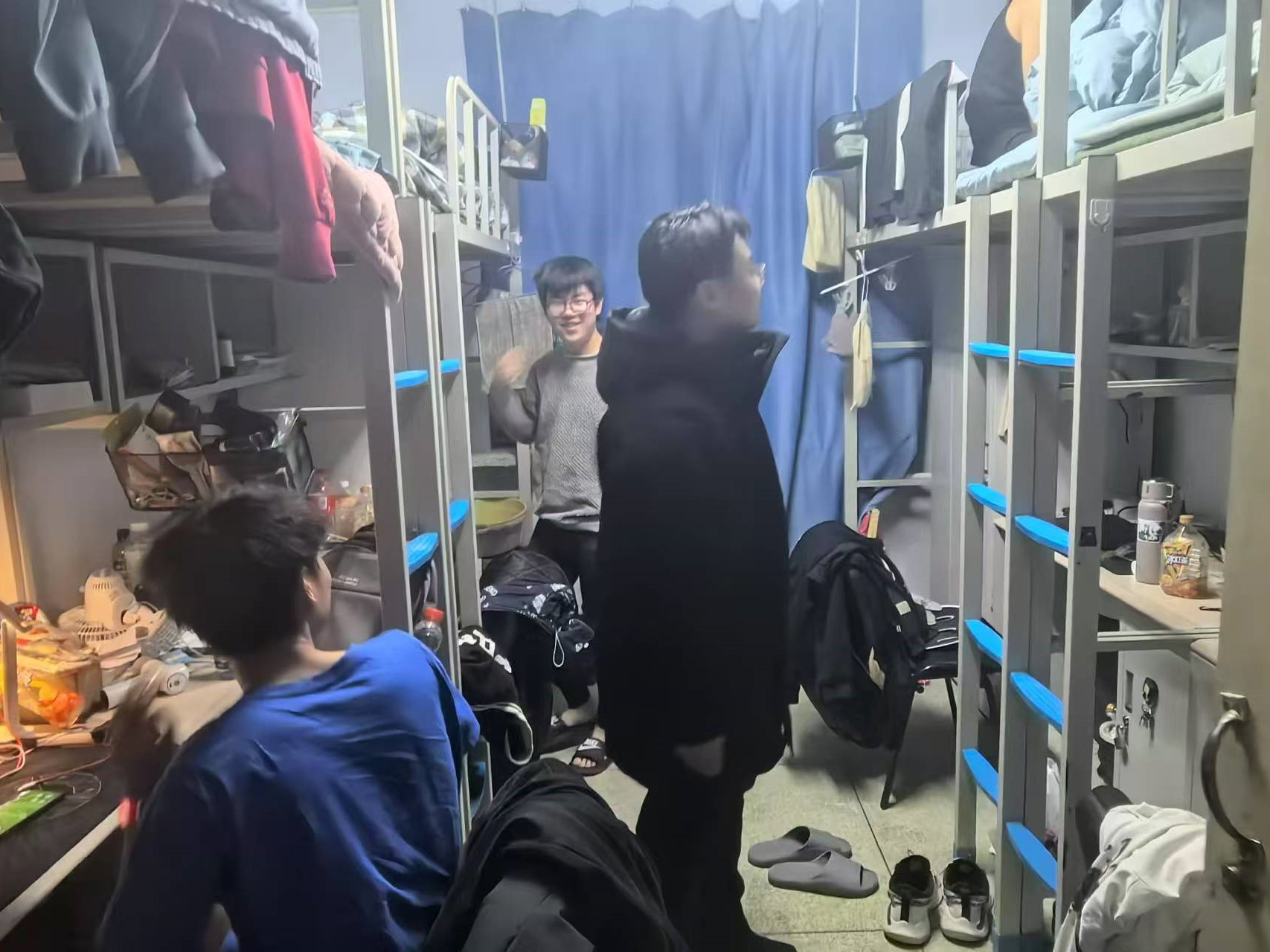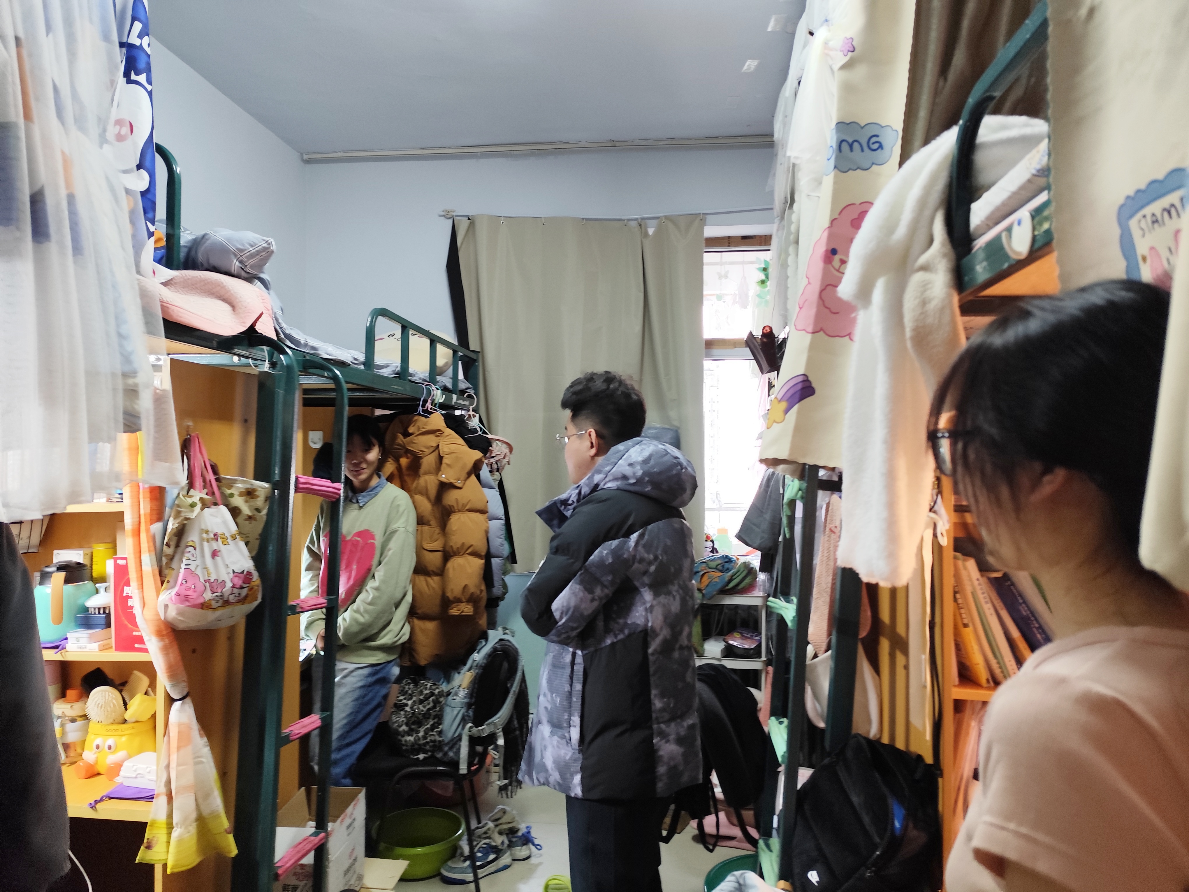 12月20日,2023级辅导员姜岳彤老师进入南苑二公寓寝室,提醒员工注意寝室卫生,及时进行期末复习,同时将个别寝室床铺损坏的情况进行报修。