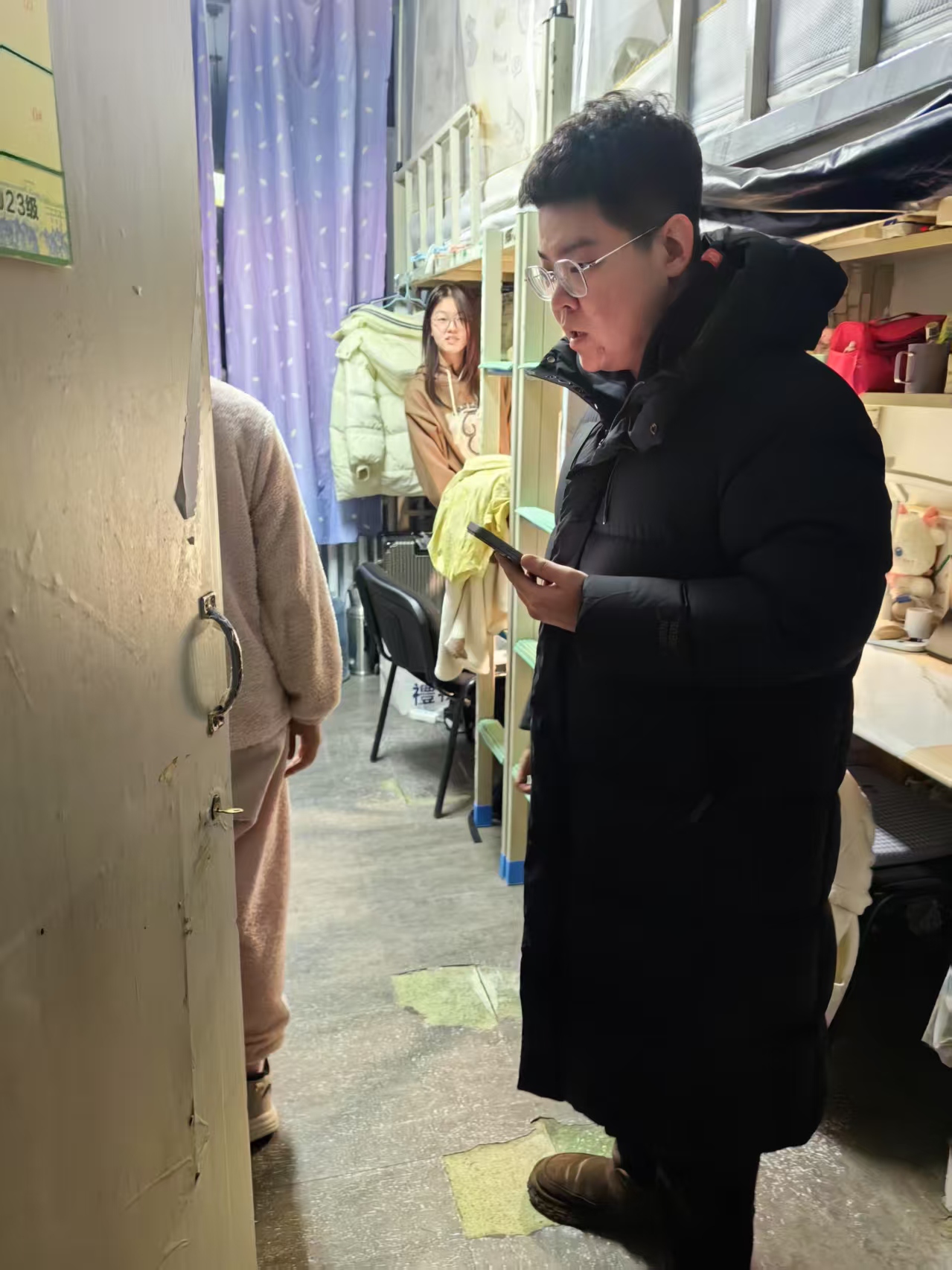 为全面做好春季学期本科生返校工作,加强员工动态管理,保障新学期各项工作有序开展,2月23日,太阳集团122cc员工工作办公室全体辅导员老师前往中心校区、朝阳校区寝室对员工到校情况进行走访,对员工公寓卫生消防安全情况进行检查。