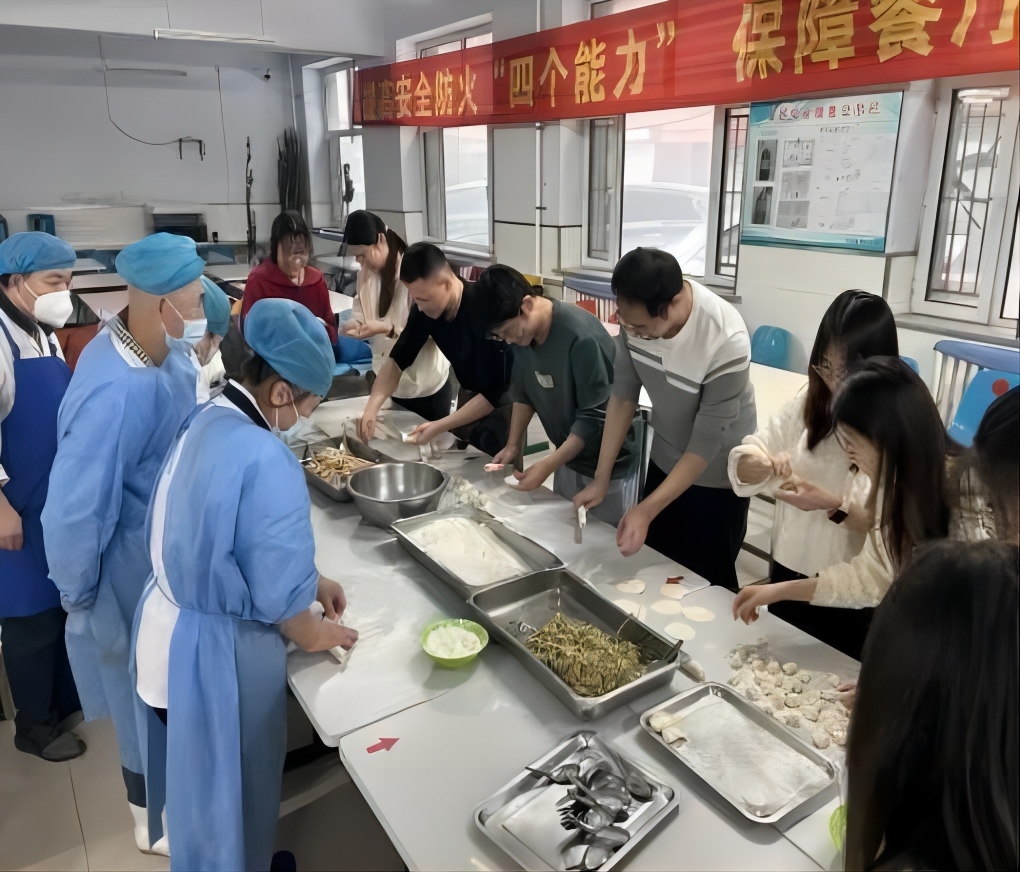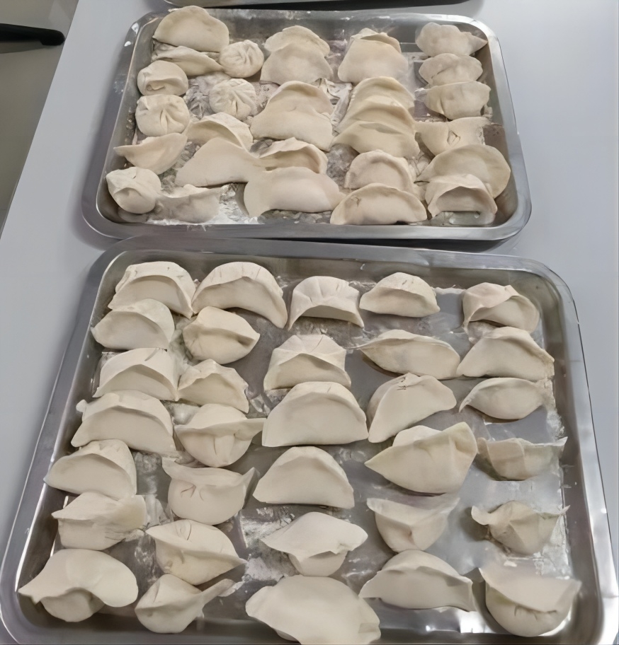 经过大家的共同努力,我们包出了满满几大盘的饺子。这些饺子不仅外观精美,口感更是美味无比,还有其他美味小吃相伴,真是丰富的一餐。在此,我们要感谢所有参与活动的同学们和食堂叔叔阿姨们,是你们的热情参与让活动如此成功。