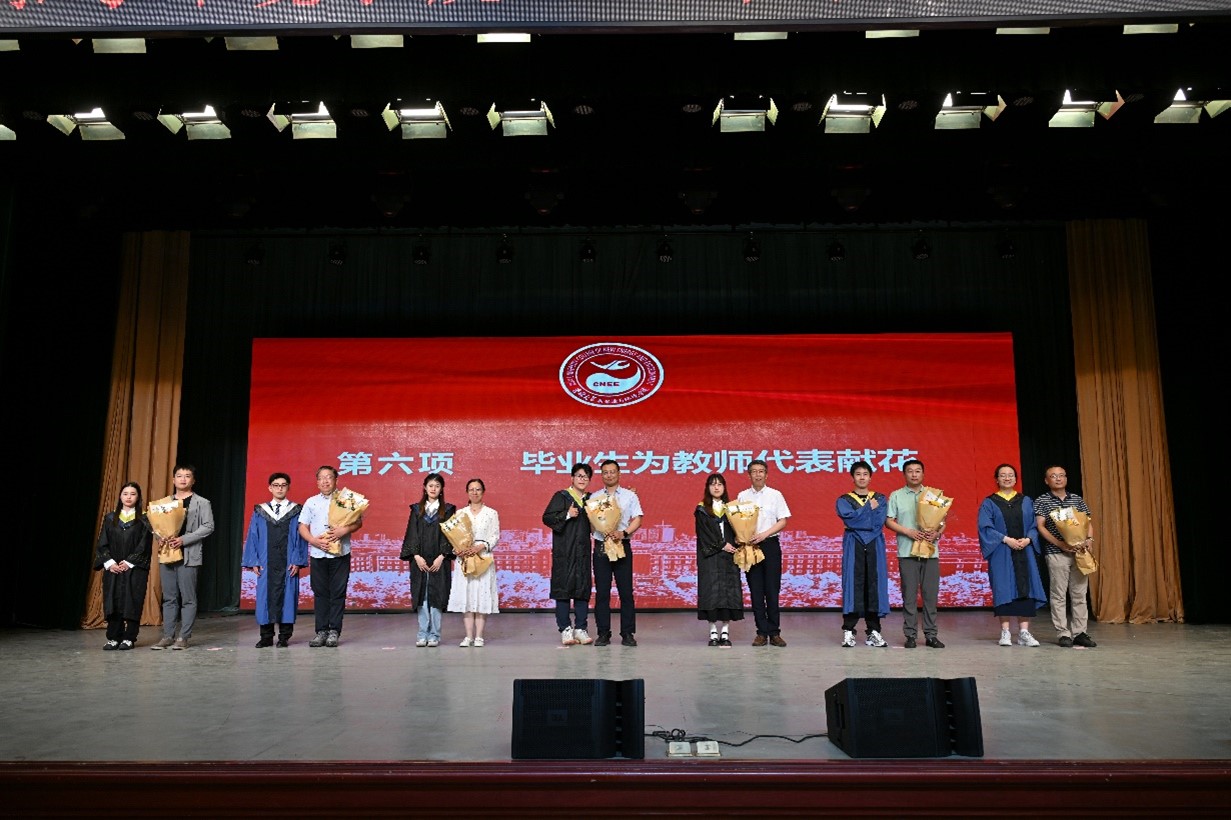 典礼前播放了公司教师毕业寄语视频,本科毕业年级辅导员霍美汐、研究生和本科生代表献唱《如果我们不曾相遇》。毕业典礼在激昂的国歌声中开始,公司党委副书记兼副经理吴哲宣读《关于表彰2024届优秀毕业生的决定》,公司经理许天福和党委书记汪祥松为优秀毕业生颁发证书。公司党委副书记温卓宣读《太阳集团122cc关于授予2024届毕业生学位的决定》,主礼教授许天福教授、李鸿雁教授、郑娜教授、卞建民教授、花修艺教授、董军教授为319名毕业生授予学位、拨动流苏。学位授予仪式后,毕业生代表为优秀毕业论文指导教师献花,感谢老师们的辛勤付出。副经理徐军为2024届员工年级理事颁发聘书,呼吁员工们持续关注公司和公司发展,为母校建设建言献策。