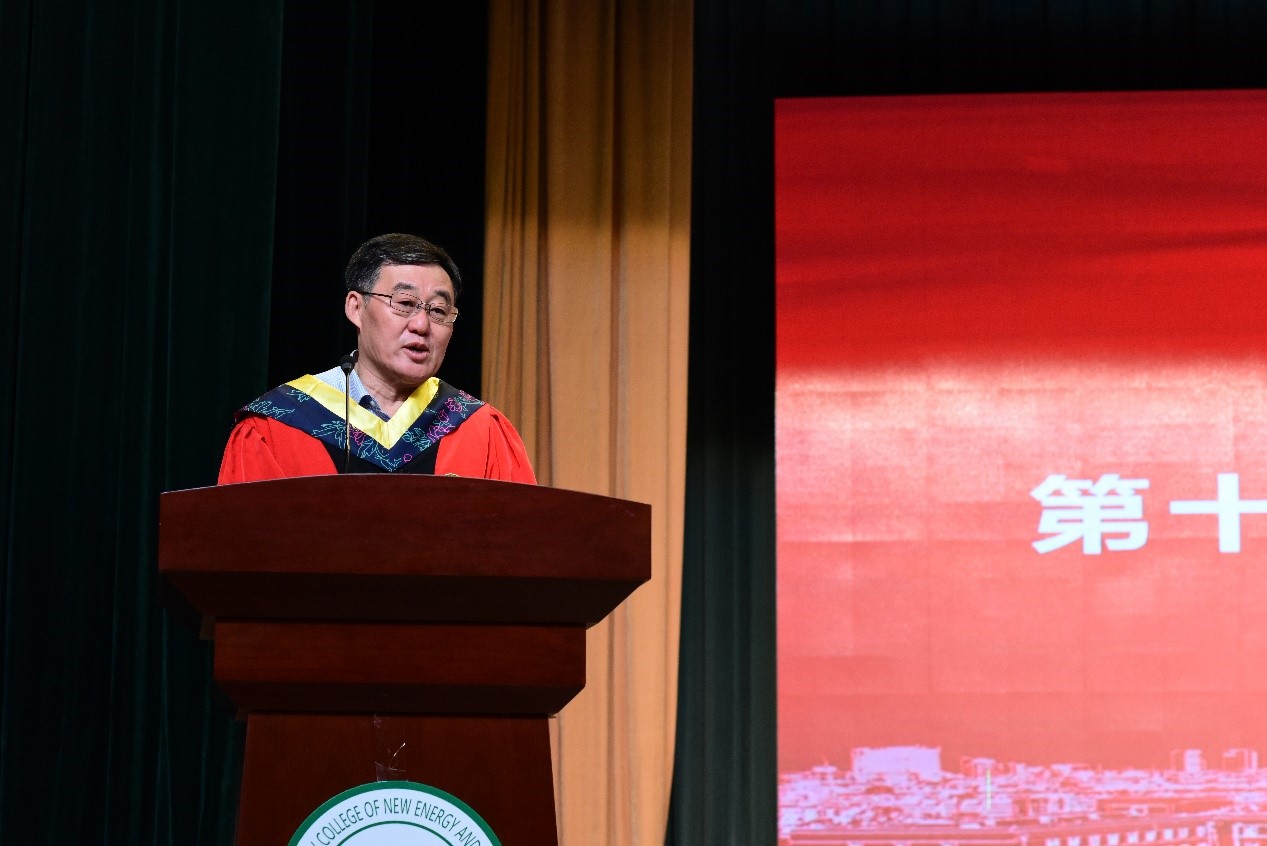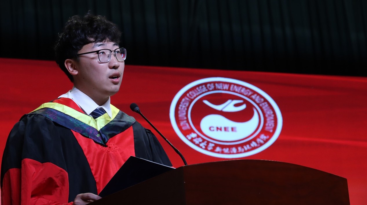 博士毕业生潘紫东和本科毕业生张东琦分别作为毕业生代表发言,他们分享了在校的成长历程,祝福毕业生在未来的不懈奋斗中再创佳绩。环境工程系主任张大奕教授致辞,张老师鼓励毕业生作为环境领域未来的从业者、开拓者和领导者,承担起对环境和社会的责任,展现出积极进取、创新开拓的精神,成为奋发有为的时代新人。林岚作为优秀员工代表,回顾了自己在校期间的难忘时光,分享了工作中建功立业的际遇,激励毕业生要不忘初心,行稳致远,心怀家国。经理许天福在最后的致辞中表示,希望同学们要有信心、定力和决心,做走在新时代前列的奋进者、开拓者、奉献者;希望同学们厚植家国情怀,在国之大者中成就小我;希望同学们保持一份热爱,怀揣梦想,笃定前行。