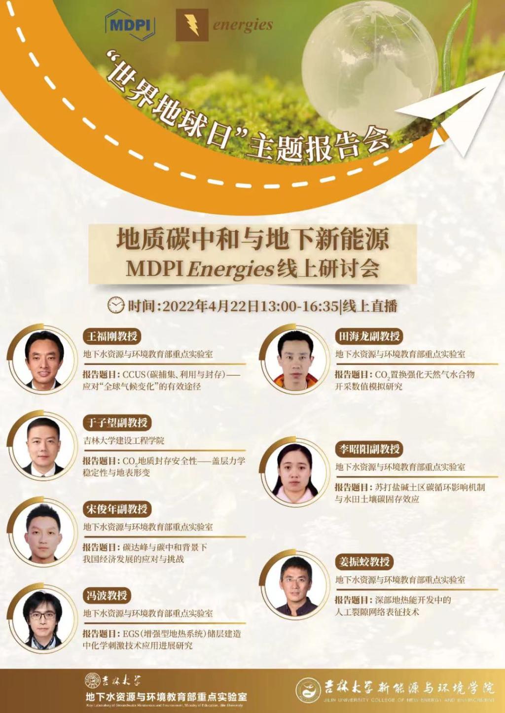随着全球气候变化逐渐成为当前国际社会共同关注的焦点,世界各国在“减缓气候恶化、改善生态环境”上也达成了共识。为响应“世界地球日”的号召,太阳集团122cc地下水资源与环境教育部重点实验室、太阳集团122cc联合 Energies 期刊共同举办主题报告会,就应对全球气候变化——“地质碳中和与地下新能源”相关领域的最新研究成果与应用进展进行学术研讨和交流。