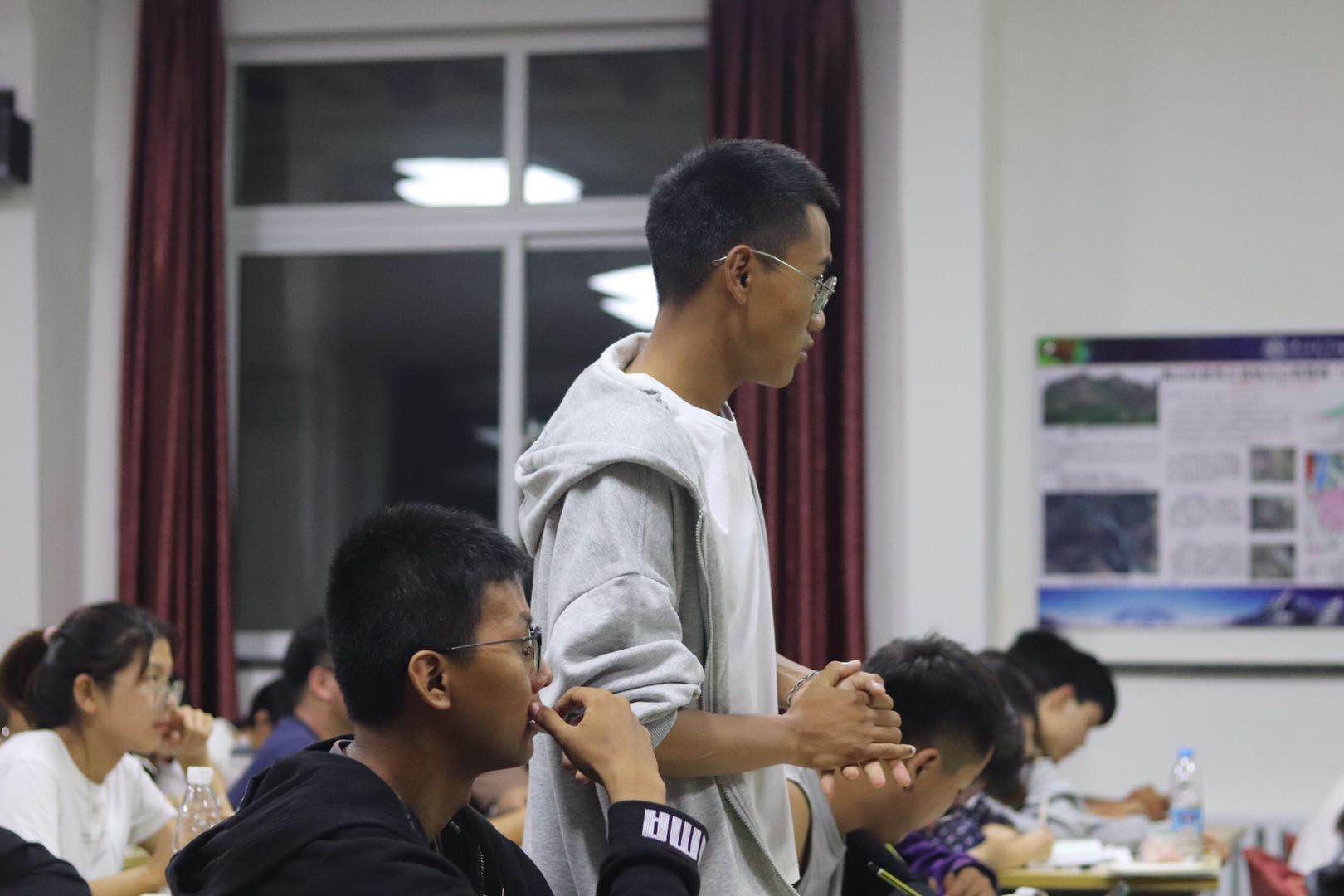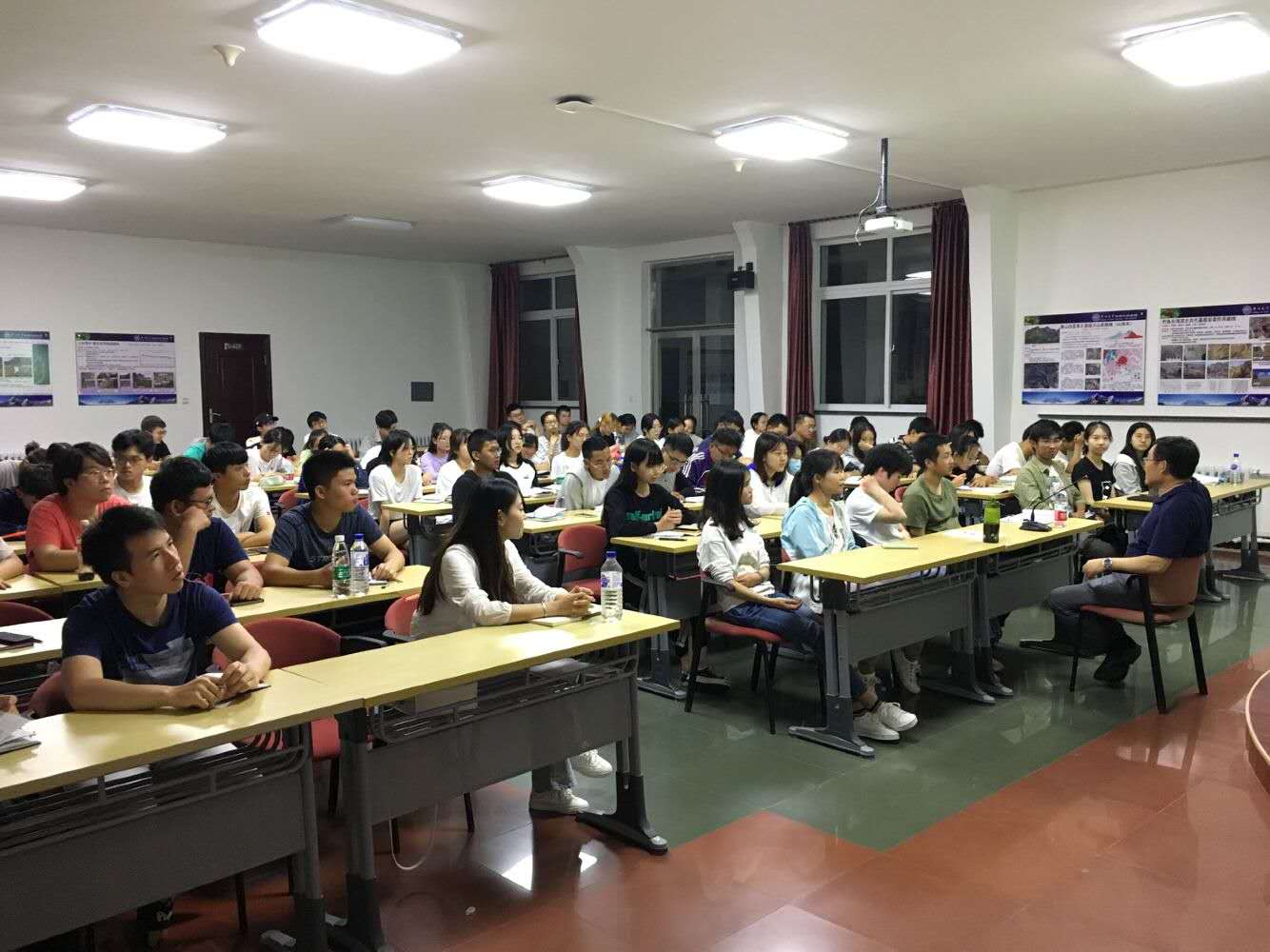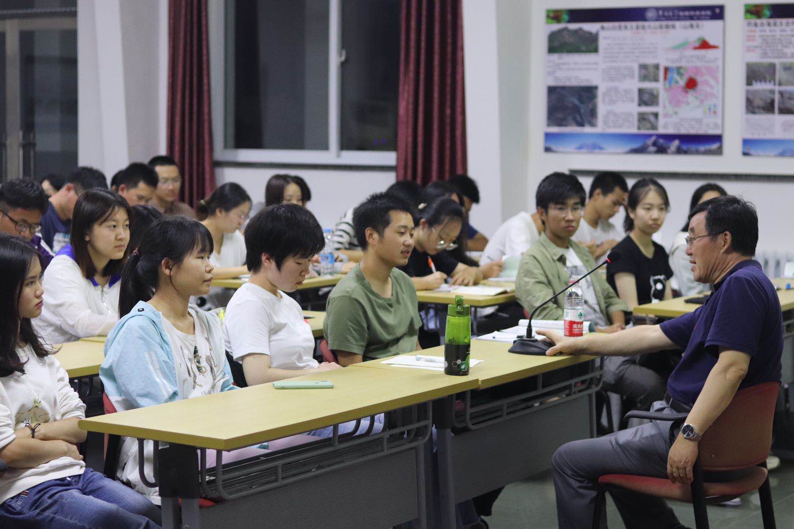 达了书本知识在实践运用过程中的困惑,提出了公司专业评估前景以及本专业相关的考研、就业等问题,许经理肯定同学们在书本上与野外实习中汲取的知识,分析专业现状与就业前景,鼓励同学们继续深造。同学们也积极地分享了自己本周实习过程中的趣事,教室中掌声与欢笑不断。