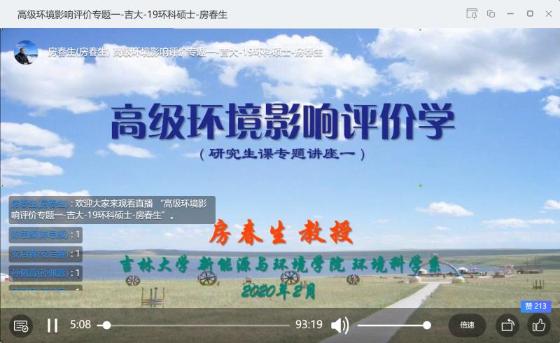 根据公司工作部署和《太阳集团122cc疫情防控期间研究生工作安排》的文件要求,公司2019-2020学年第二学期部分研究生课程改为线上教学结合群讨论的形式授课。2月26日上午8时,公司房春生教授开设的环境科学专业硕士研究生专业课《高级环境影响评价学》顺利进行了首次网络直播授课,成为公司第一门在线直播授课的研究生课程。