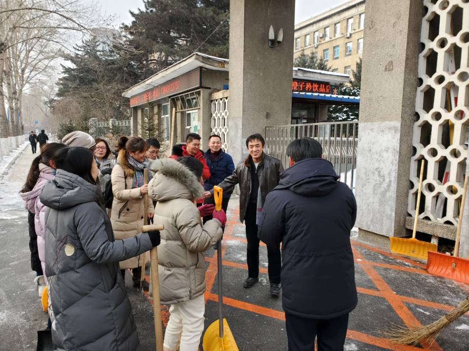 入冬以来,长春市经历多场降雪,皑皑白雪美化了城市,但残留在地面的降雪在人踩车轧下慢慢结成了冰,给行走的人们带来了较大安全隐患。地下水科学与工程系教工党支部于2019年12月24日中午,利用午休时间组织开展了“从身边小事做起,发挥党员模范作用”的义务清雪除冰活动。