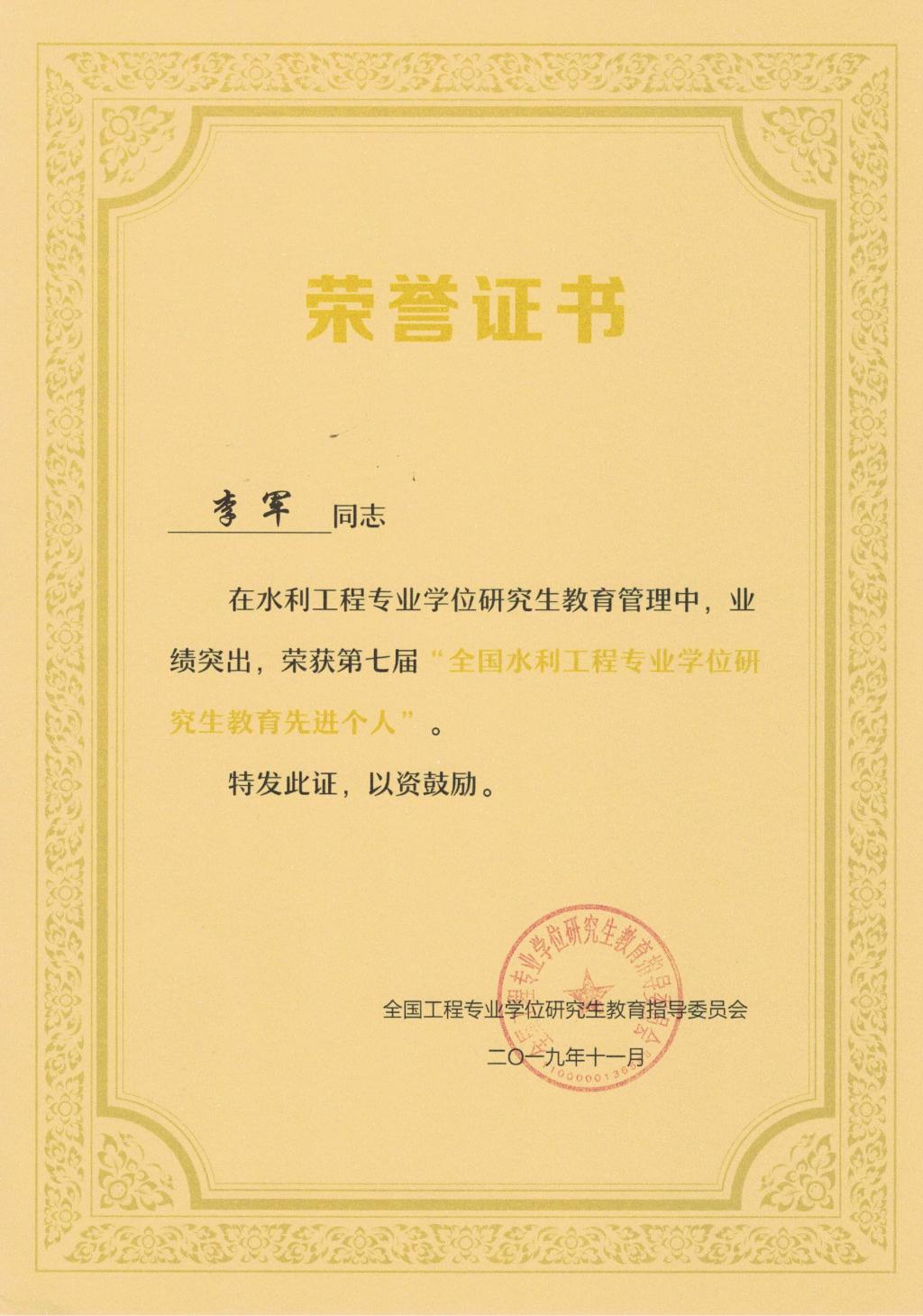 为更好地总结、交流水利工程专业学位研究生教育培养的工作和指导经验,促进水利工程专业学位研究生教育发展,提高导师指导能力,不断提高培养质量,经个人申请、单位推荐、水利工程领域核心组成员和专家投票、教指委审定,2019年共有18名指导教师被评为全国水利工程专业学位研究生优秀指导教师,14 名教工被评为全国水利工程专业学位研究生教育工作先进个人,其中公司王福刚教授