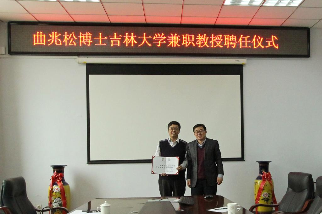 许天福经理向兼职教授曲兆松颁发了兼职教授聘任证书,并合影留念。