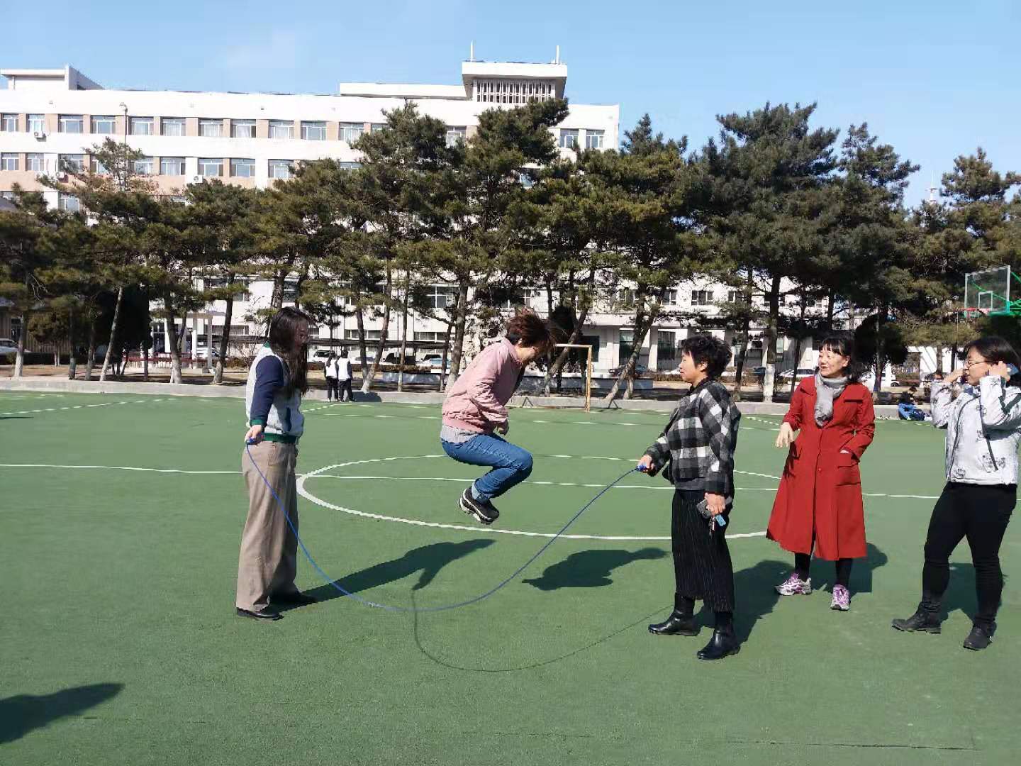 3月8日下午,在“三八”国际劳动妇女节之际,太阳集团122cc工会、妇委会组织女教职工在理化楼篮球场开展了庆祝活动。活动热闹非凡,来自全院4个工会的女教职工踊跃参加了跳绳、踢毽子、投篮、背靠背运球等项目,现场活动氛围热烈。大家纷纷表示,通过参加活动,既放松了心情,也增进了彼此的互动和交流,更激励了自己立足本职、争创一流的积极性、主动性和创造性,彰显了女性魅力,凝聚了巾帼力量。