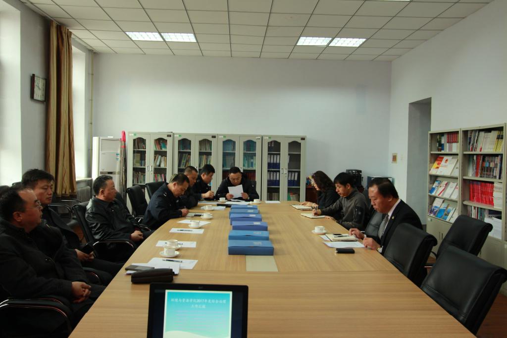 4月10日上午,环境与资源公司2017年度治安综合治理工作汇报会在北区理化楼262召开。公司治安综合治理检查验收小组(北区)组长戴世和主任、副主任等一行7人对公司2017年度治安综合治理工作进行检查验收。公司副经理齐铁志及部分行政科室负责人参加了汇报会。