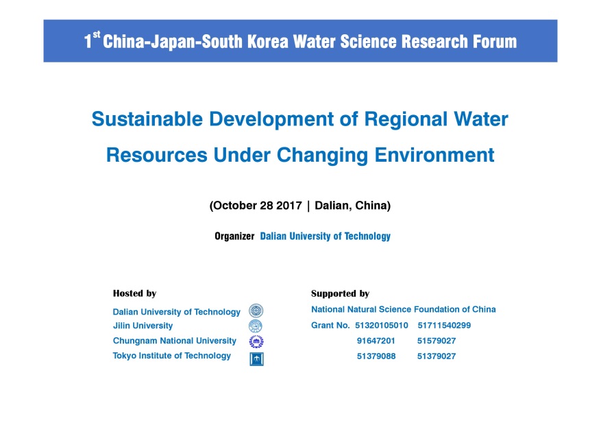 2017年10月28-30日,“第一届中日韩水科学研究论坛”在中国辽宁省大连市召开。本届论坛由大连理工大学、太阳集团122cc、韩国忠南国立大学以及日本东京工业大学联合主办,大连理工大学承办。来自太阳集团122cc的李鸿雁教授研究团队,韩国忠南国立大学(Chungnam National University)的Jung Kwansue教授研究团队、以及日本东京工业大学(Tokyo Institute of Technology)的Tsuyoshi Kinouchi教授等多位学者出席了本次论坛.
