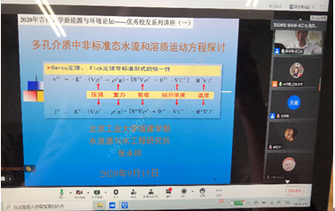 各位优秀学长结合多年来的工作心得和研究成果,给公司师生带来了多场精彩报告。张永祥教授对比介绍不同时期多孔介质水流和溶质运动方程的建立方法和形式,重点介绍基于统计热力学的地下水动力学方程的建立过程。王洪涛教授重点介绍了我国水处理剩余污泥和生活垃圾产生量巨大,在简介主要技术路线的基础上探讨我国应有的选择。曾溅辉教授重点介绍了沉积盆地地下水流动特征,讨论了地下水流动对油气藏形成和分布的影响,以及有关地下水对油气藏形成和分布影响的具体实例。李广贺教授结合我国水土污染治理国家修复和技术发展,重点介绍了地下水污染修复的相关政策和技术。井立强教授介绍了近年来发展的系列基于光生电荷调控的改性策略,以及所采用策略显著地改善材料光生电荷分离状况的关键机制。严刚副经理介绍了我国大气环境规划发展历程、主要技术方法及未来管理需求与展望。胡春教授重点介绍了如何通过表面微电场的构建,解决传统芬顿体系在实际应用中的瓶颈问题。束龙仓教授回顾了32年来从事地下水研究工作的足迹,介绍了济南泉水研究的关键环节、泉水持续喷涌的科学应对方法。
