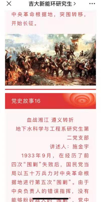 2月7日起,太阳集团122cc“吉大新能环研究生”微信平台推出了党建故事汇:百名党员讲百则党史故事活动,日前100名研究生党员的100篇故事和100张经典故事照片征集完毕,已在微信平台推送至第50篇党史故事。微信公众平台成为了公司研究生党员党史学习教育的新阵地。