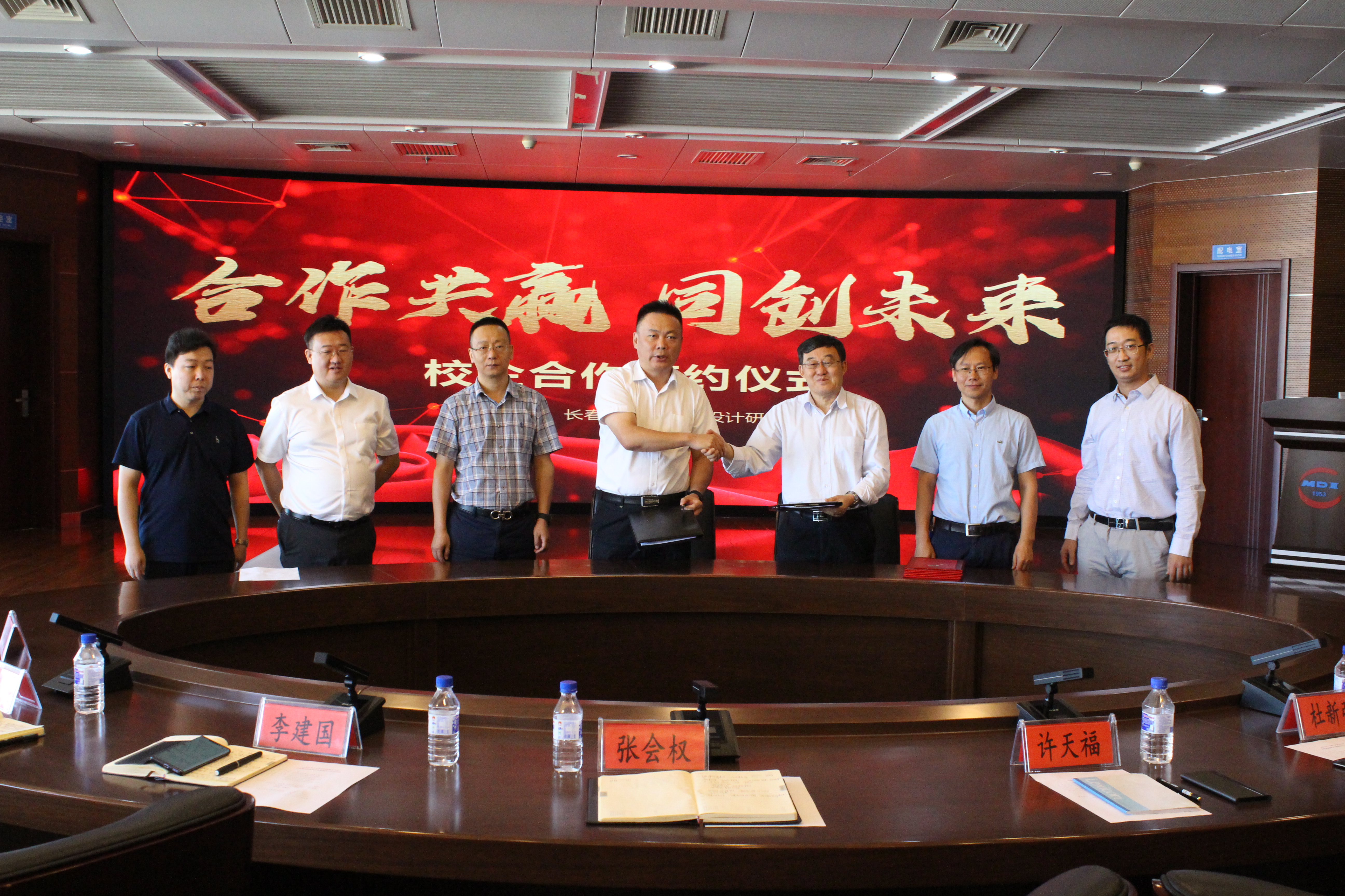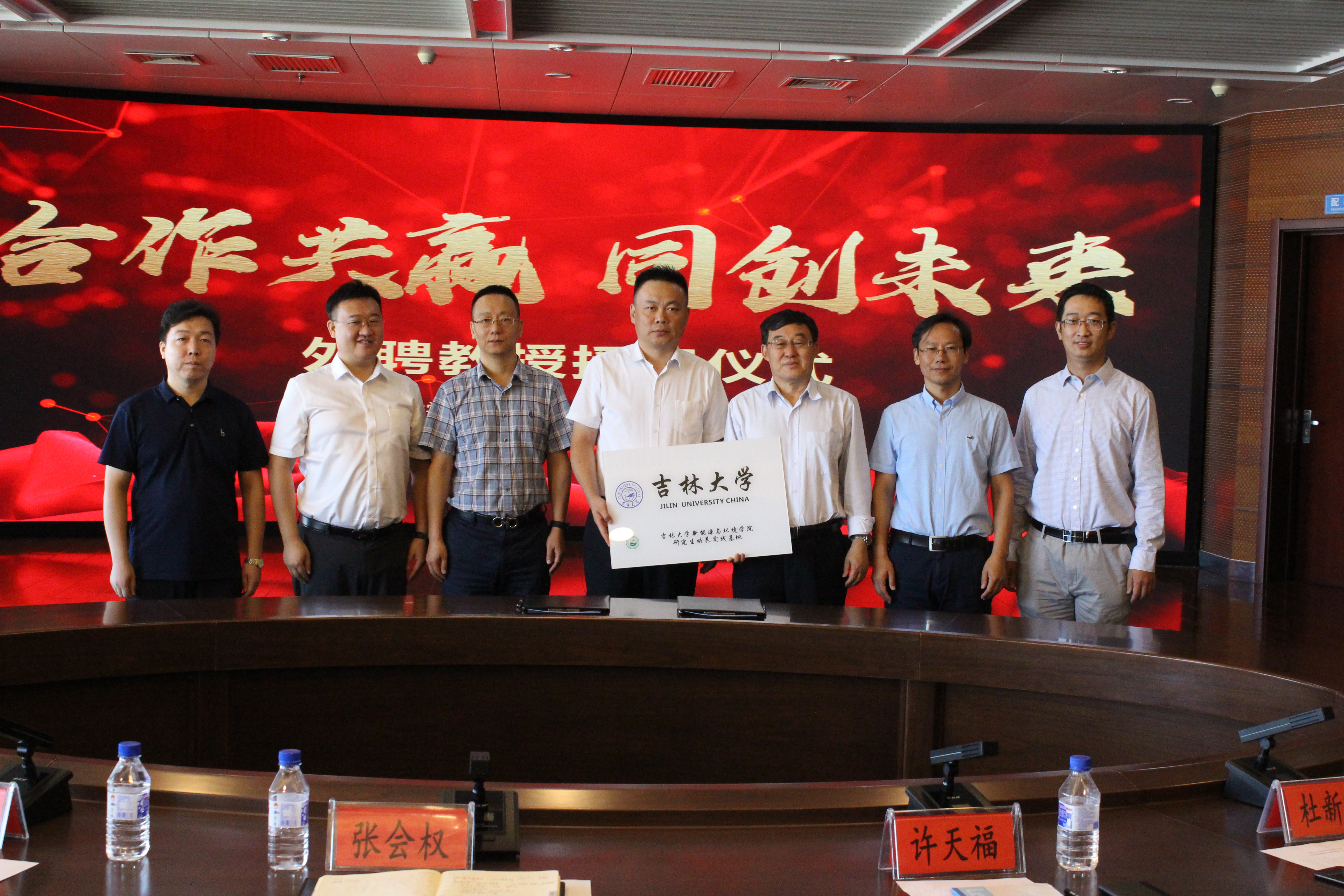最后,许天福经理和张会权经理共同在合作备忘录上签字,并为公司产品实践基地揭牌;公司许天福经理亲自为张会权经理、李建国总工、孙宏亮主任颁发了校外合作导师聘书。本次会议的圆满结束,标志着两院研究生联合培养实践基地的正式成立,双方建立良好合作基础,约定共同推进长春市新型城市雨洪管理体系的建设和完善。