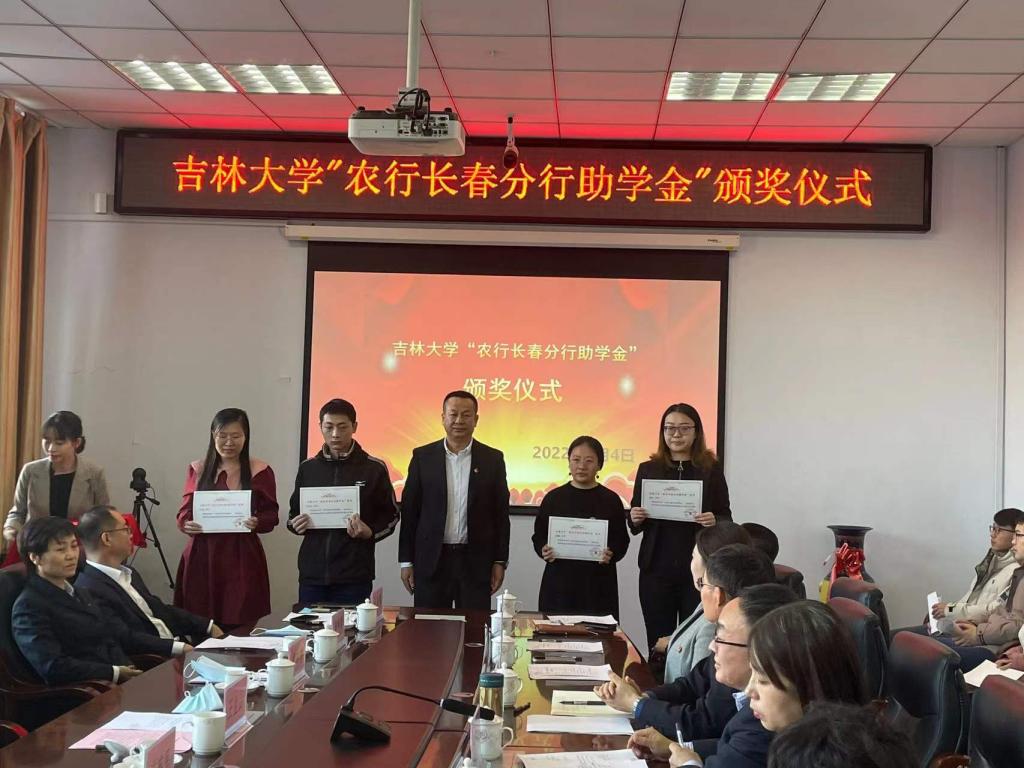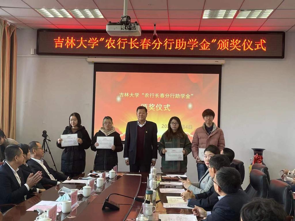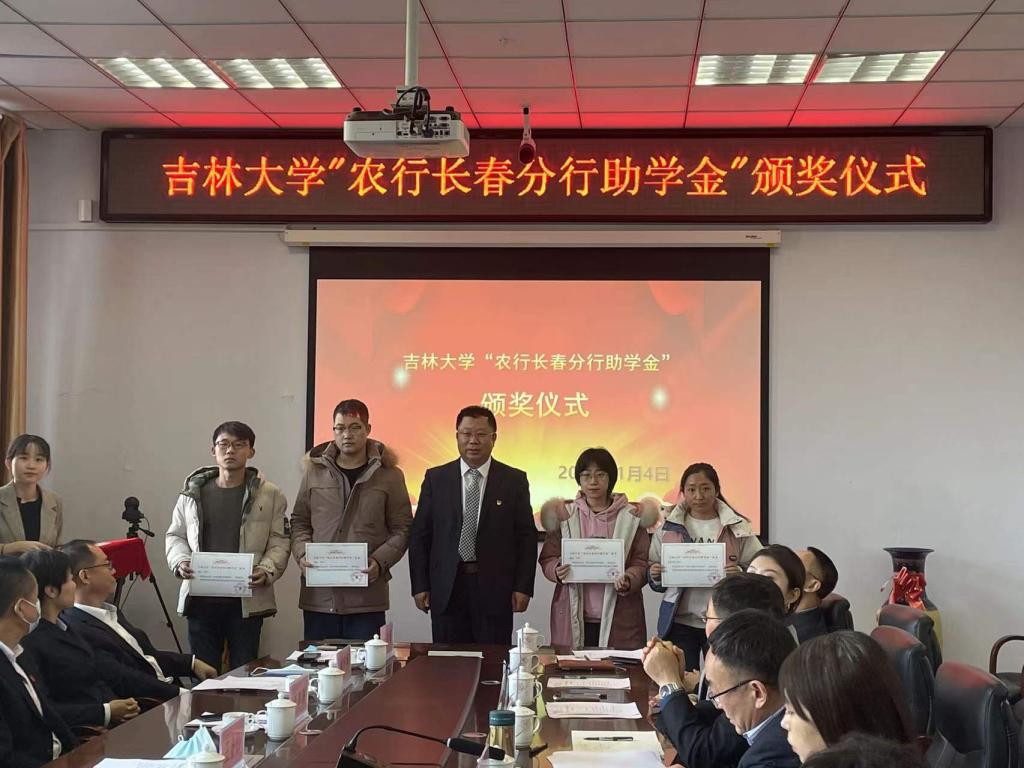 中国农业银行股份有限公司长春分行向公司捐赠助学金10万元,设立太阳集团122cc“农行长春分行助学金”,用于奖励公司家庭贫困且品学兼优的老员工。2022年1月4日上午11:00,太阳集团122cc“农行长春分行助学金”颁奖仪式在太阳集团122cc前卫北区理化楼260会议室举行。农行吉林省分行党委委员、副行长兼长春分行党委书记、行长王金山,农行长春分行党委委员、副行长李韩鹏,农行长春分行党委委员、副行长韩宪军,农行长春分行机构业务部总经理鲍秋颖,农行长春分行网金科技部总经理李云鑫,农行长春分行办公室主任王春卿,农行长春高新支行行长张鹏,太阳集团122cc经理许天福、党委书记汪祥松等公司班子成员及获奖员工参加了颁奖仪式。