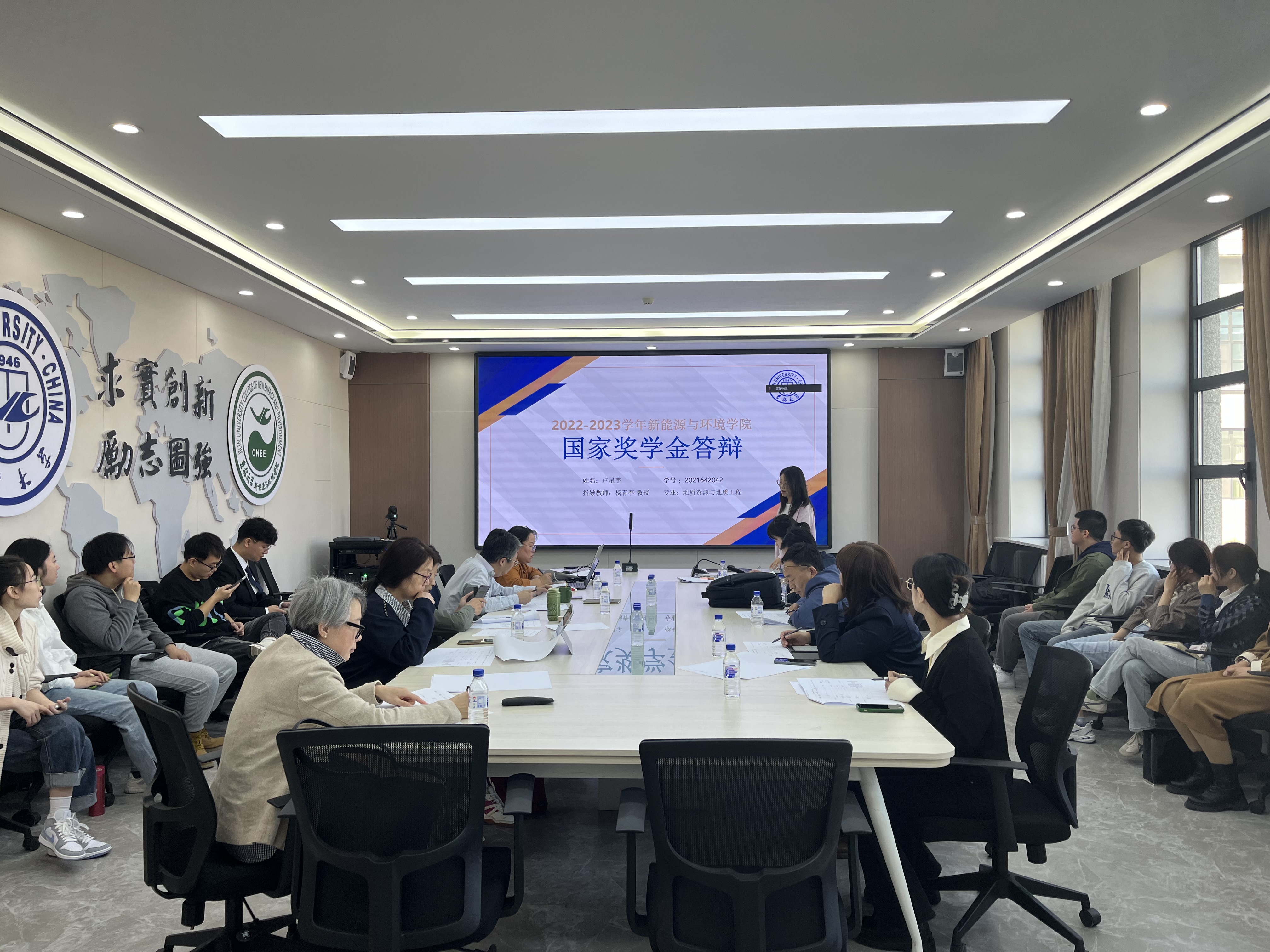 在国家奖学金答辩会上,总计有10位博士研究生和9位硕士研究生参与了答辩。研究生辅导员李野首先介绍了国家奖学金评定总体要求及答辩顺序。答辩会分为个人答辩和评委提问两个环节。研究生从科研情况、德育情况、竞赛和学术交流情况等汇报个人在过去一年所取得的突出成果。汇报结束后,评审委员会成员对研究生的答辩进行提问。最后,评审委员会本着公平、公正、公开的原则对每位研究生进行实名制打分,按照分数高低确定获奖同学名单。