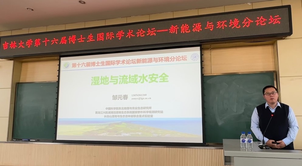中国科公司东北地理与农业生态研究所研究员邹元春专家以《湿地与流域水安全》作特邀报告。邹元春研究员针对三处东北地区代表性流域的生态文明建设,明确了以“水生态保护”的国家需求,指出位于陆地和水生生态系统交错带的湿地对水安全的重要性,认为科研应从价值链到力量链,向大家传递了“研以致用、用以报国”的思想。