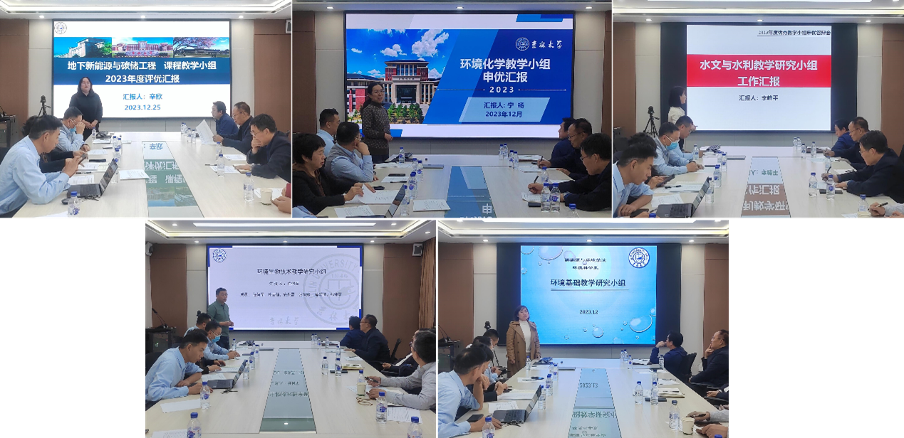 会议下半程由副经理卞建民教授主持,各教学小组负责人以及教师个人就教学工作开展情况、取得成果、工作思路、未来计划等几个方面进行汇报答辩。经评委打分,评选出优秀“教学研究小组”一等奖一组:地下新能源与碳储工程教学研究小组;二等奖两组:环境化学教学研究小组、水文与水利教学研究小组;三等奖两组:环境生物技术教学研究小组、环境基础教学研究小组;确定2022年度“青年教师提升计划(教学标兵)”六人全部通过培养期最终考核。