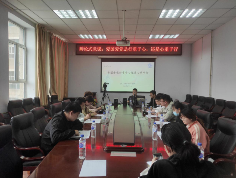 为热烈庆祝中国共产党成立100周年,回顾党的百年光辉历程,颂扬党的丰功伟绩,唱响新时代主旋律,进一步激发党员干部新时代新担当新作为,2021年4月23日,公司开展庆祝建党100周年“求实”沙龙第1期:辩论式党课“爱国爱党行重于心,还是心重于行”的研究生活动。活动采用参赛人员线下辩论,观众线上参与的形式进行。公司党委副书记温卓老师和研究生专职辅导员李野老师莅临指导。活动由辩论赛主席崔庭晨主持,参赛员工有:程澍、师盛坤、田琳、王鑫垚、张飞宇、贾璐、韩继博、盘惠林等。