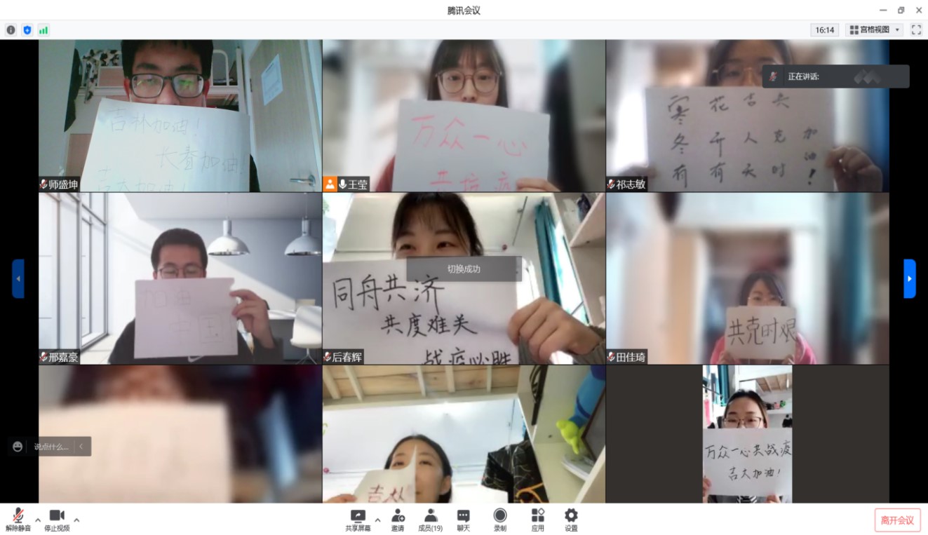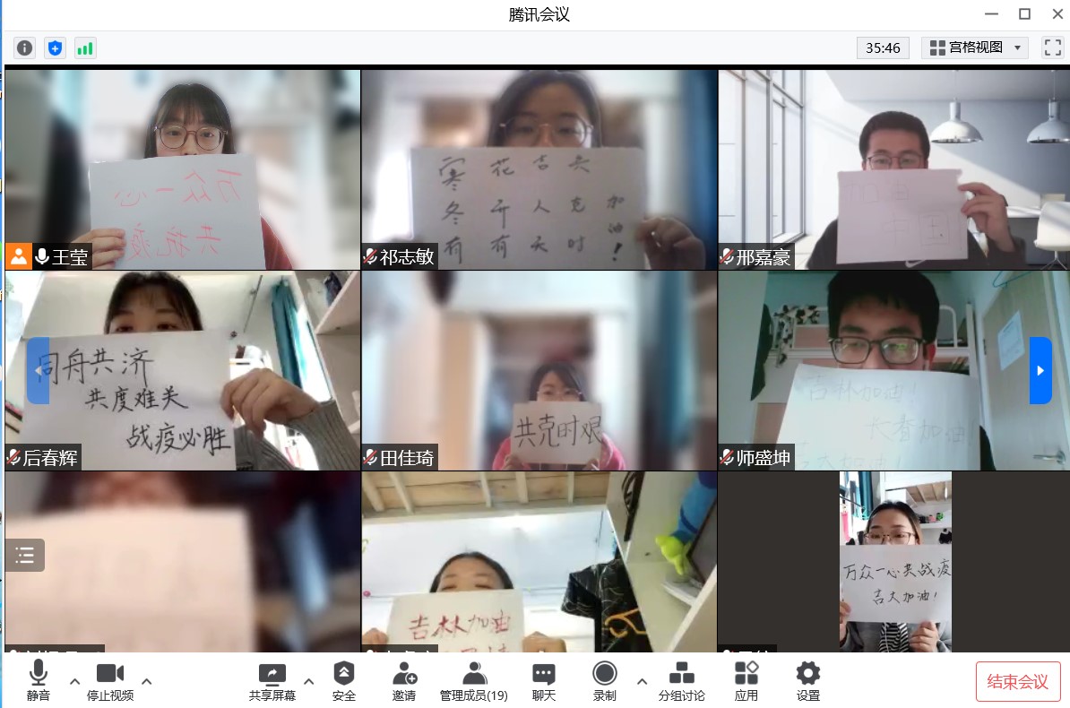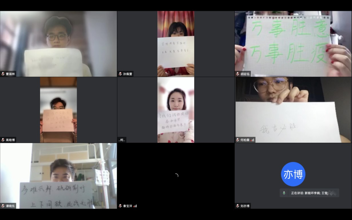 在会议最后,大家都展示了自己想说的话,互相加油打气,大家都坚信抗疫必胜。